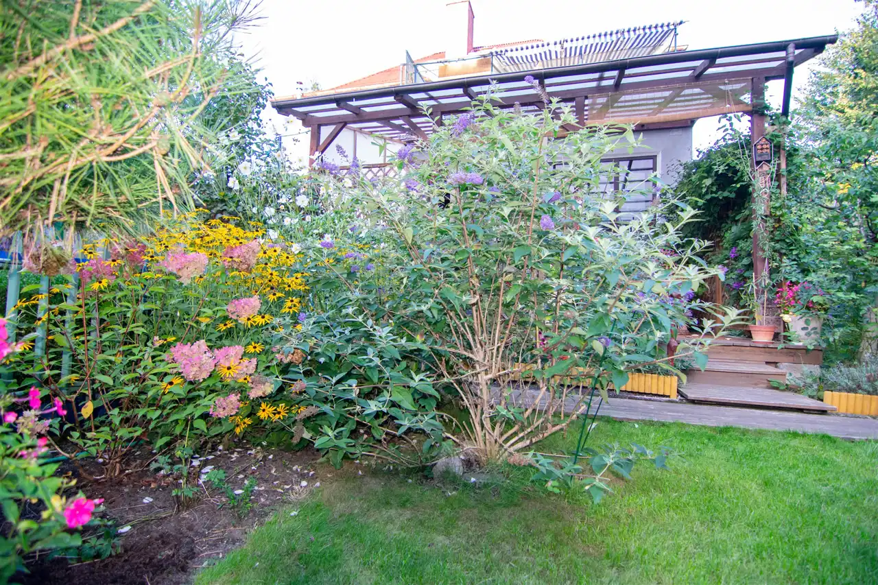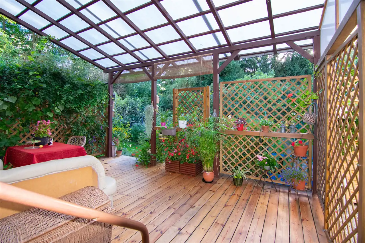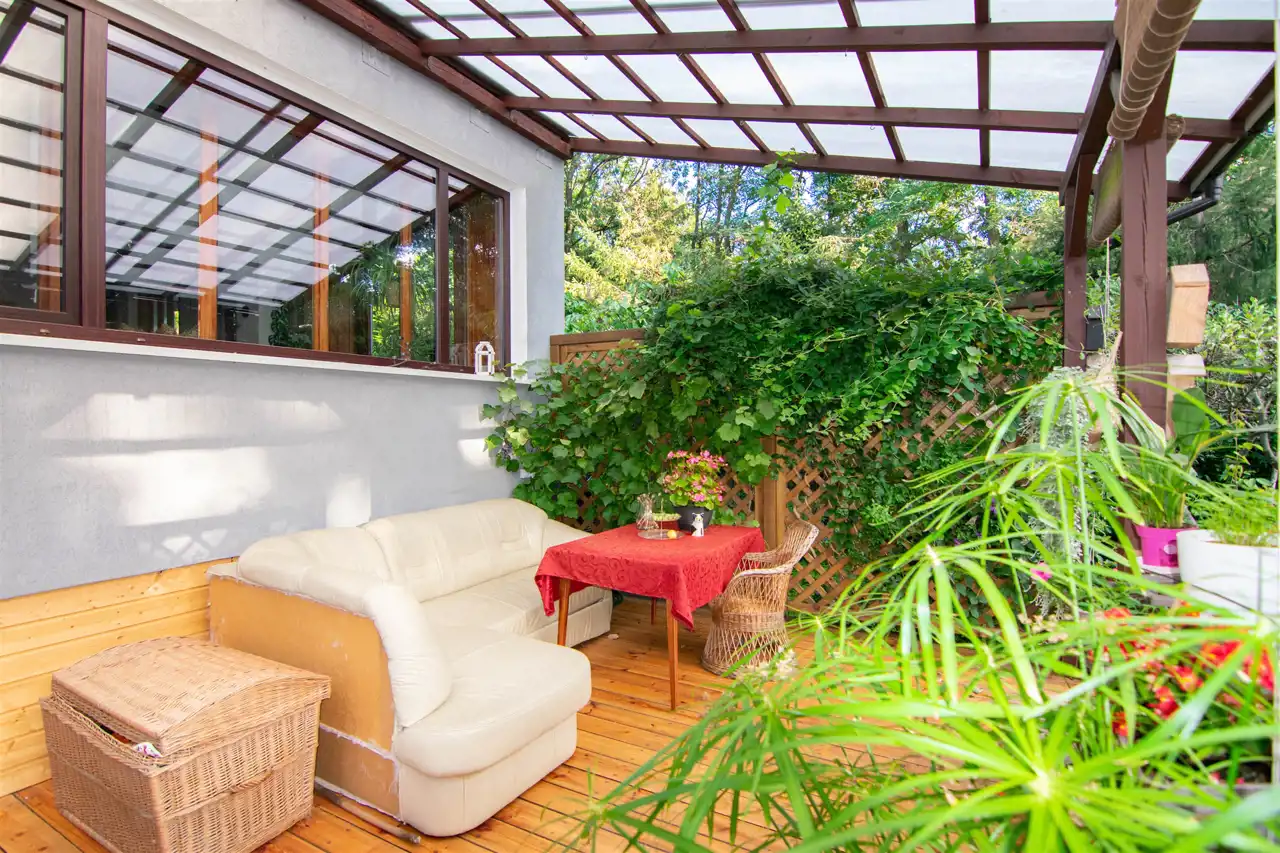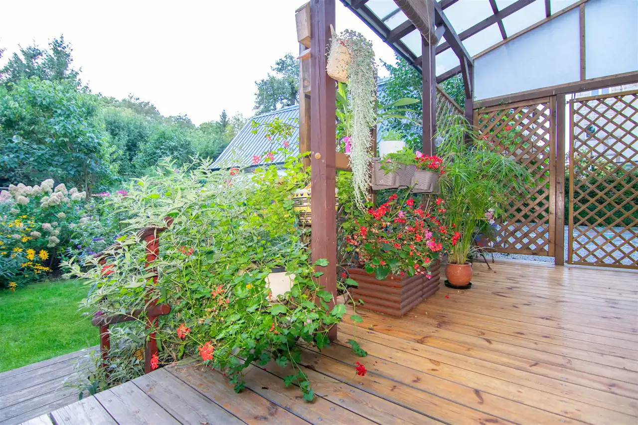 Zadaszony Taras o powierzchni 20 m² z bezpośrednim wyjściem do zagospodarowanego ogrodu o powierzchni 270 m² – idealne miejsce do relaksu i spotkań z bliskimi.