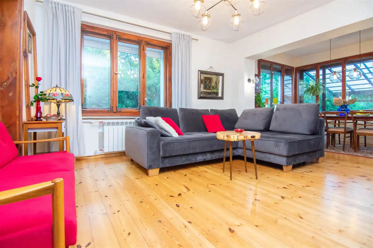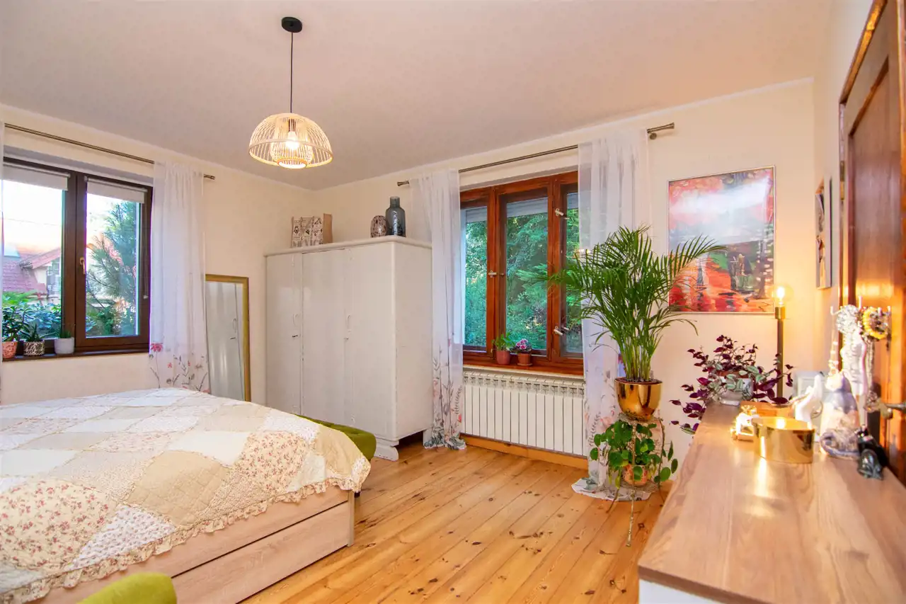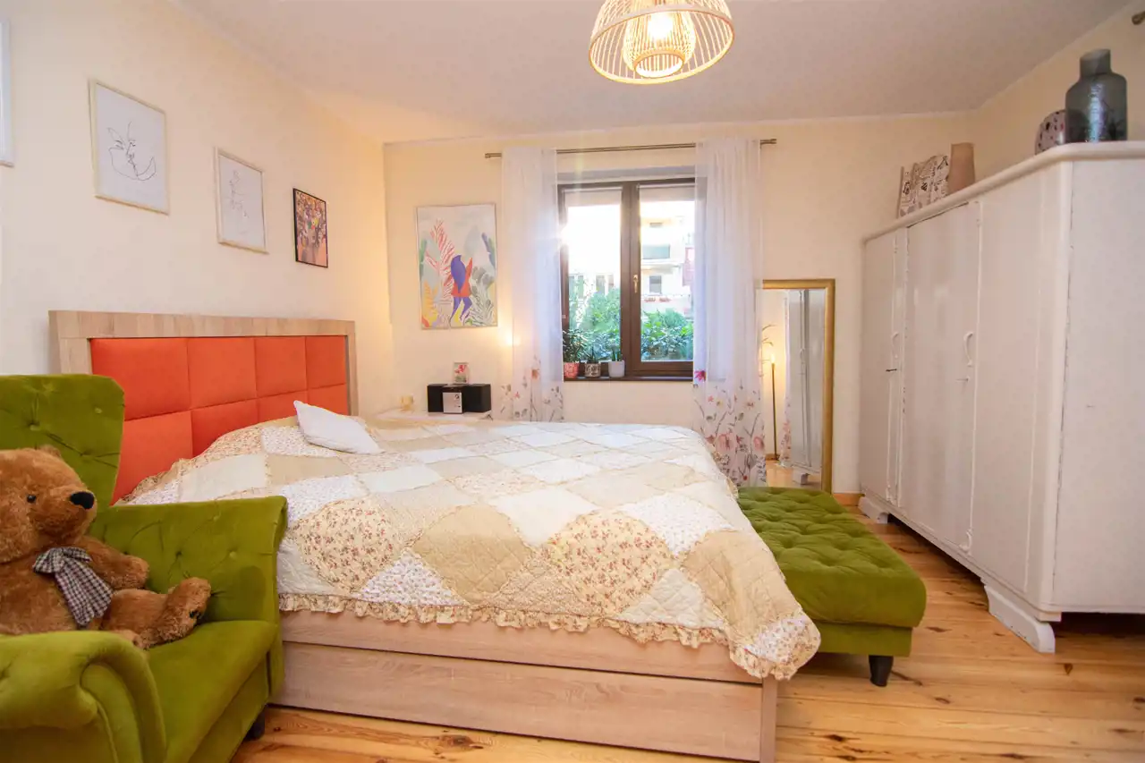 Przedmiotem oferty jest wyjątkowe, bezczynszowe mieszkanie o powierzchni 97 m², usytuowane na parterze kameralnego budynku dwurodzinnego. To doskonała propozycja dla osób ceniących komfort, prywatność oraz bliskość natury.