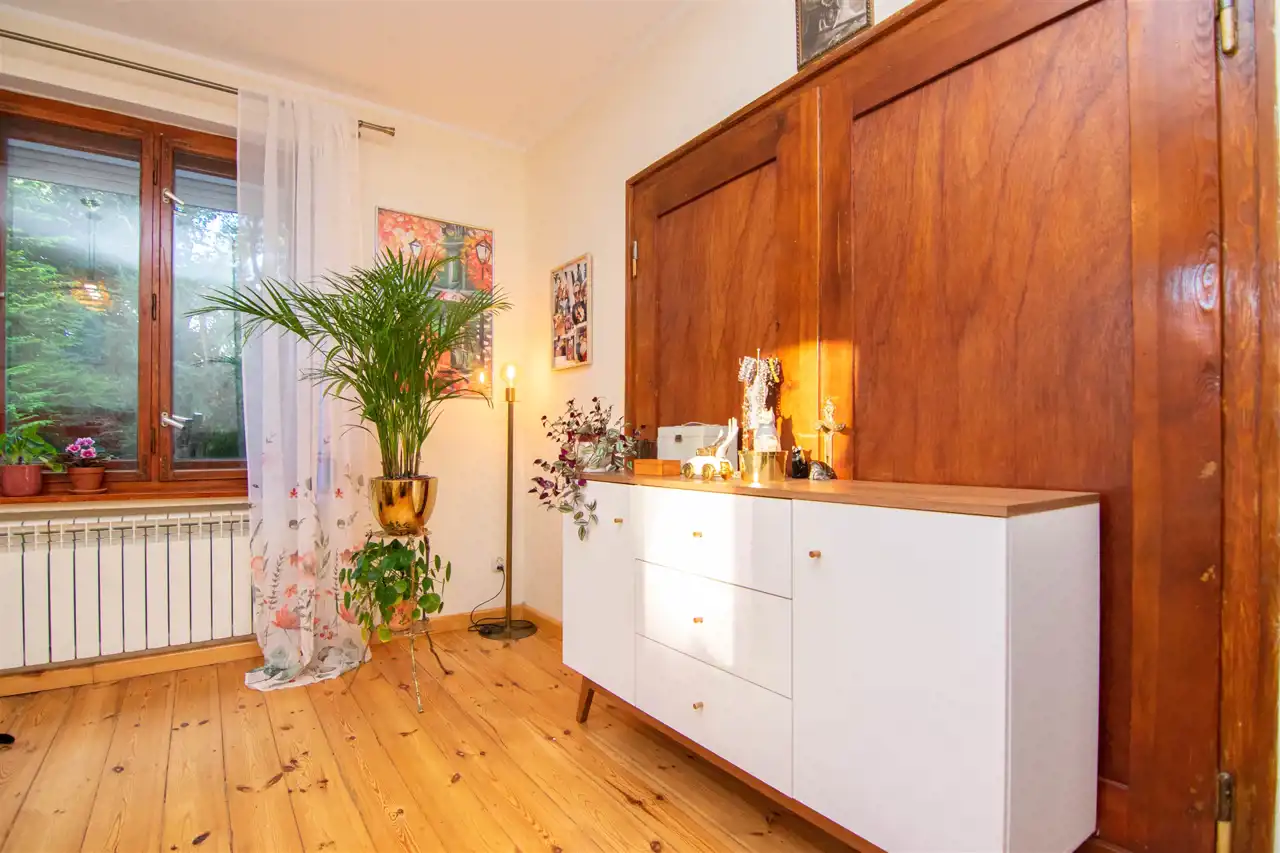 Mieszkanie ogrzewane jest z pieca gazowego dwufunkcyjnego, który zapewnia również ciepłą wodę. Okna drewniane skrzynkowe.