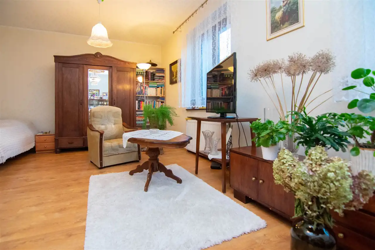 To wyjątkowa nieruchomość, która łączy zalety mieszkania i domu – przestronne wnętrza, prywatny ogród oraz pełne zaplecze gospodarcze.