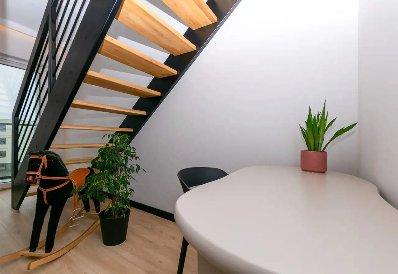 - Górna część mieszkania z rozkładem dwustronnym.