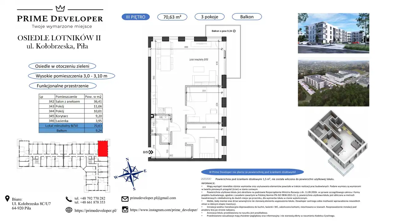 - Charakterystyka mieszkania 70.63 m2, 3 pokoje