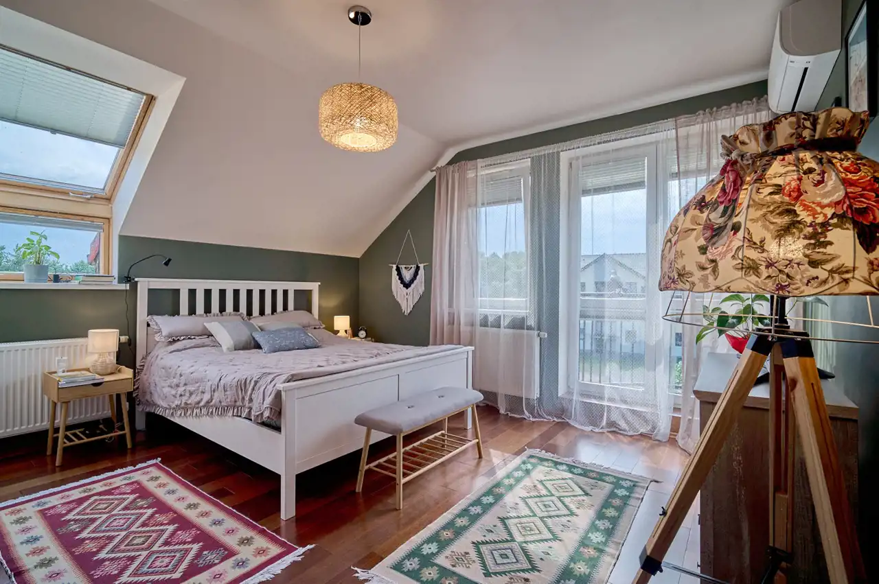 Sypialnia główna na piętrze również z wyjściem na balkon (okno 2.skrzydłowe).
