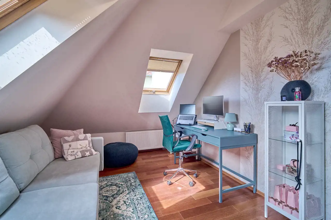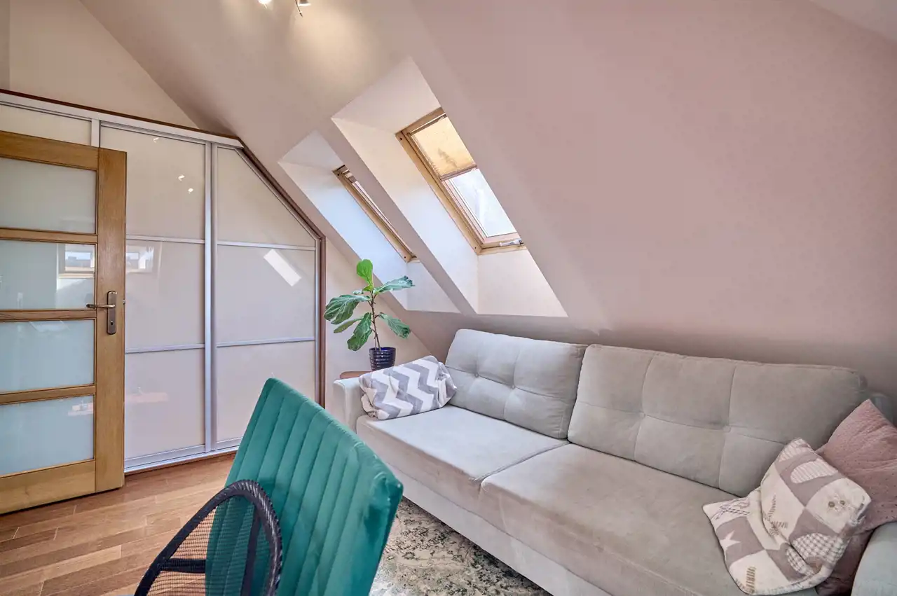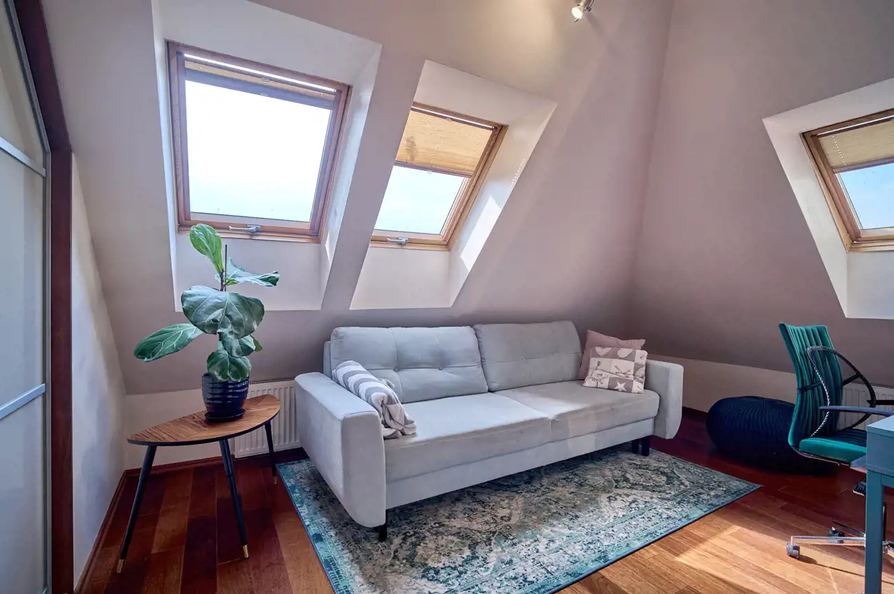 Główna o pow. 6,6 m2 z doświetleniem w postaci okna dachowego oraz z ogrzewaniem podłogowym: