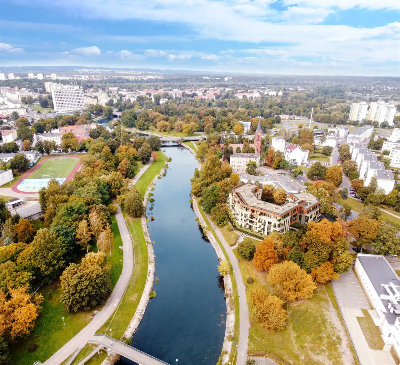 Lokalizacja to serce Piły, gdzie pulsujące życie miejskie spotyka się z malowniczymi krajobrazami nad rzeką. Położone tuż przy brzegu Gwdy, apartamenty oferują niezwykłe połączenie wygody życia w centrum miasta z dostępem do uroków natury.