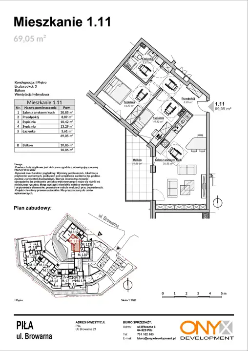 Jednym z kilku jest apartament o pow. 69,06 m2 składający się z przestronnego salonu z aneksem kuchennym, 2 sypialni, łazienki oraz przedpokoju to tylko jeden z przykładowych mieszkań, który chcemy Państwu zaproponować. Mieszkanie to posiada piękny duży balkon o powierzchni 10,86 m2.