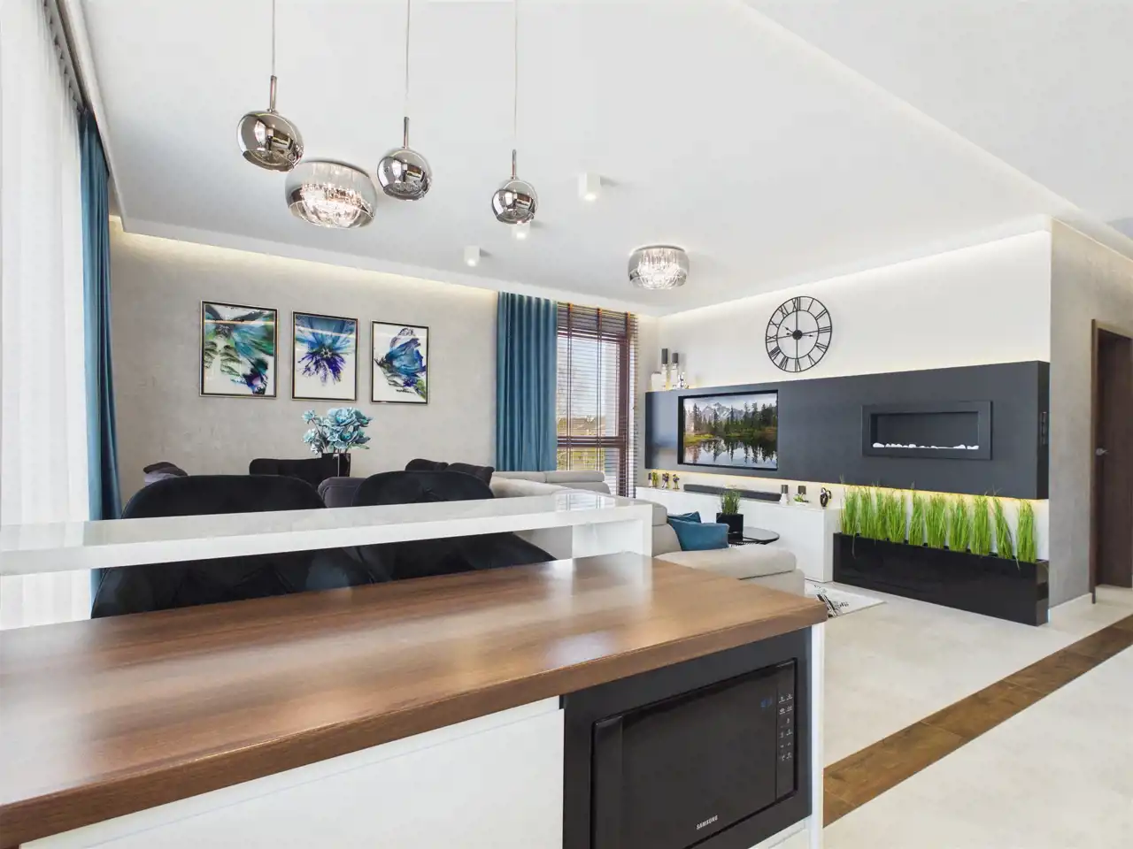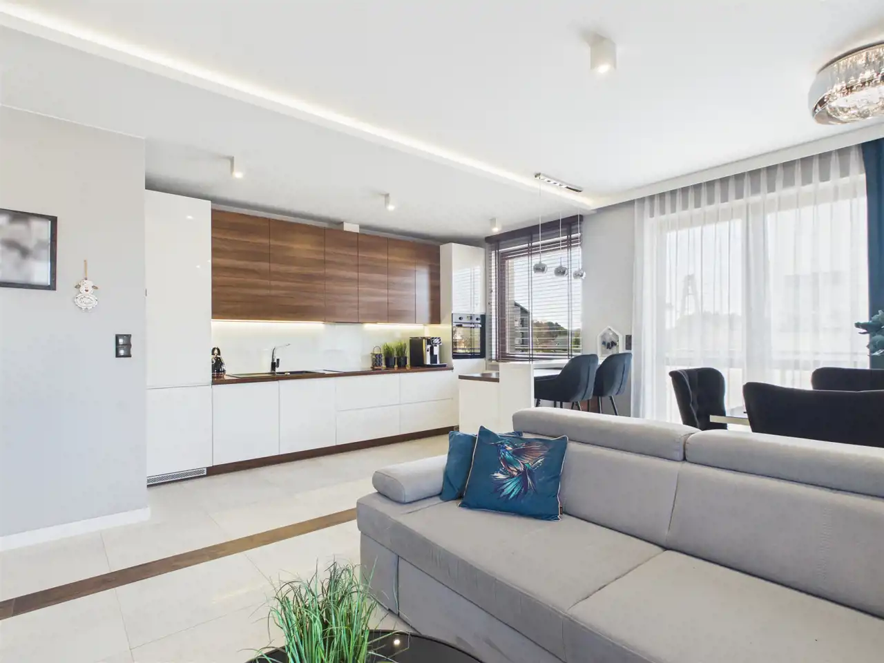 W cenie zawiera się umeblowanie kuchni wraz ze sprzętem AGD, w większości marki Samsung. Właściciele nabyli mieszkanie jako pierwsi, wykańczali z pomocą projektanta wnętrz.