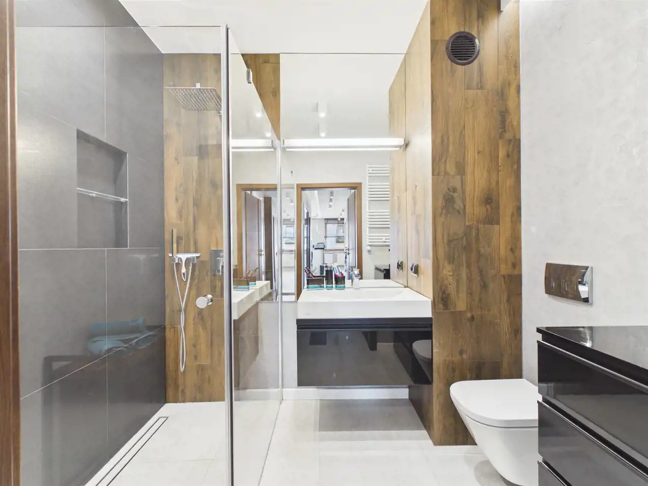 Mieszkanie jest wykończone wysokiej klasy materiałami.