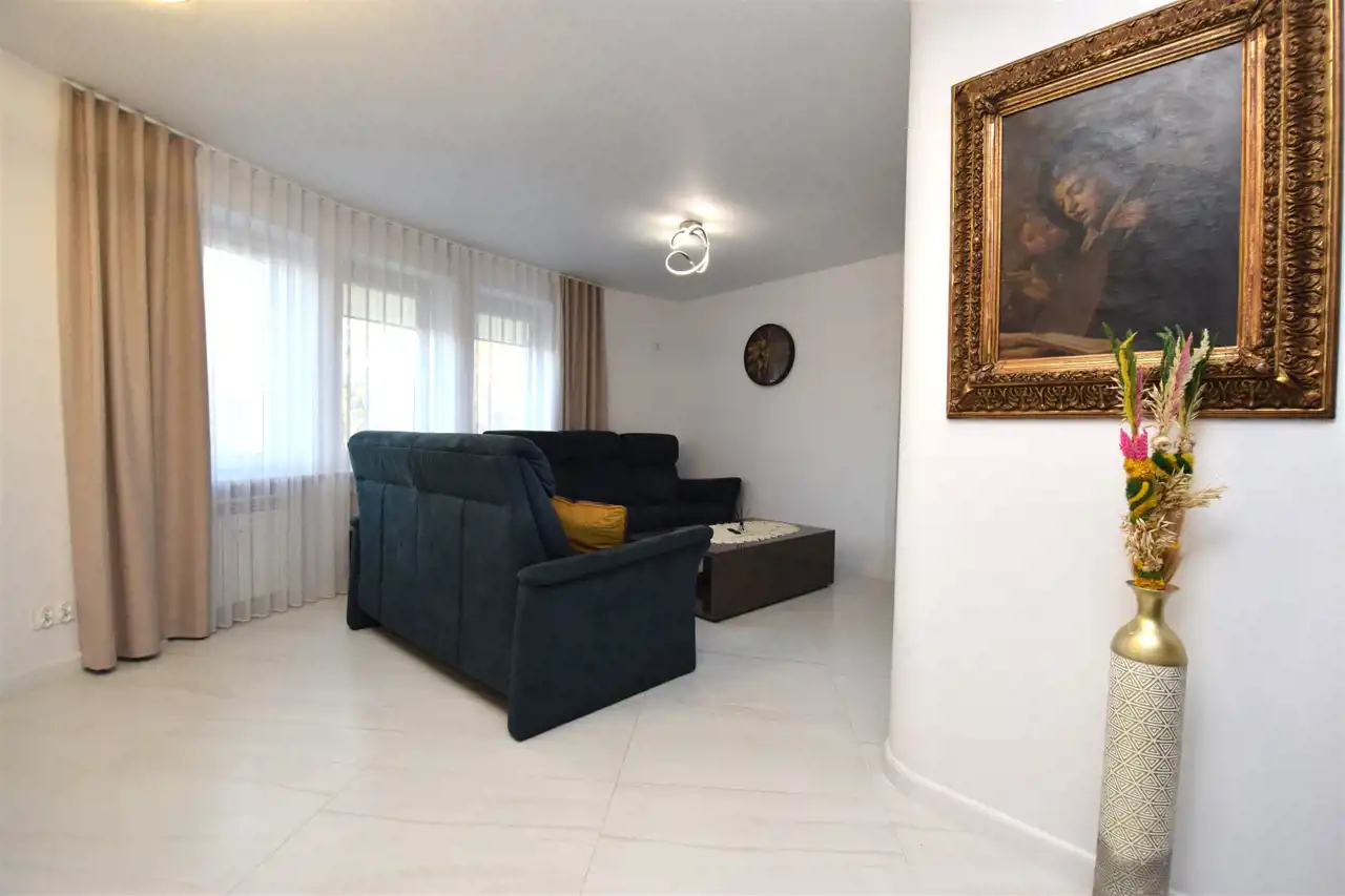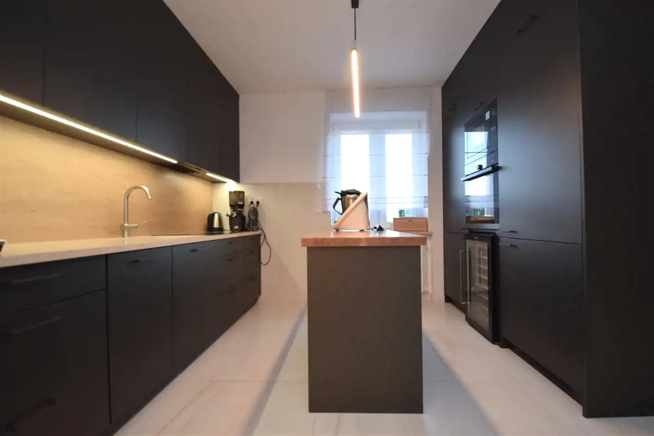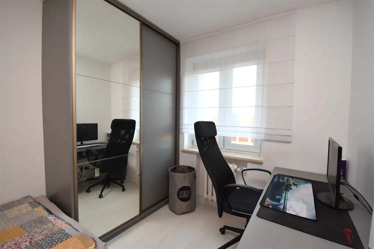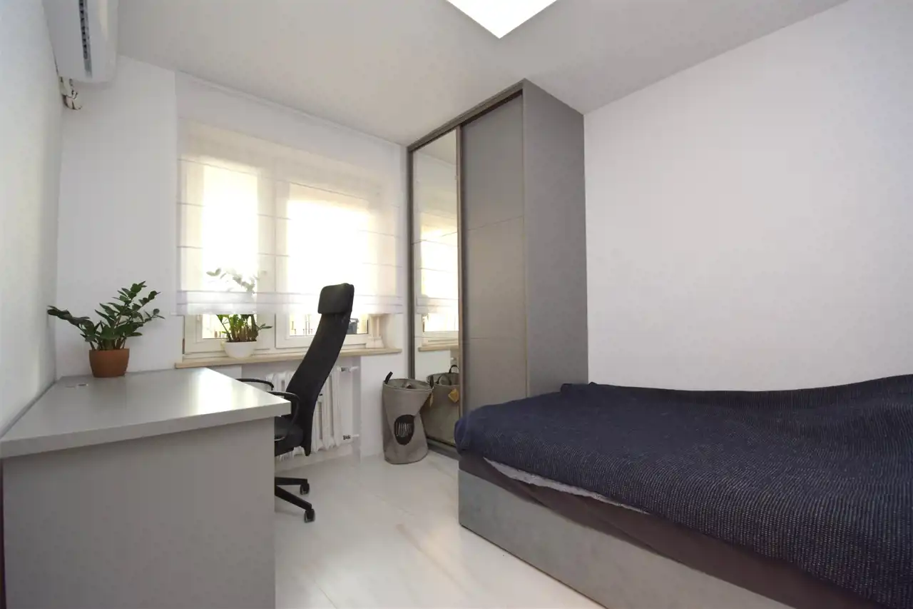 Apartament został zaprojektowany z myślą o wygodzie i funkcjonalności. Po generalnym remoncie zyskał zupełnie nowy charakter – wymieniono wszystkie instalacje, odświeżono ściany i podłogi, a także zamontowano nowe, solidne drzwi. Całość wykończono materiałami wysokiej jakości w jasnej, nowoczesnej kolorystyce, dzięki czemu wnętrze jest pełne światła i przestrzeni.