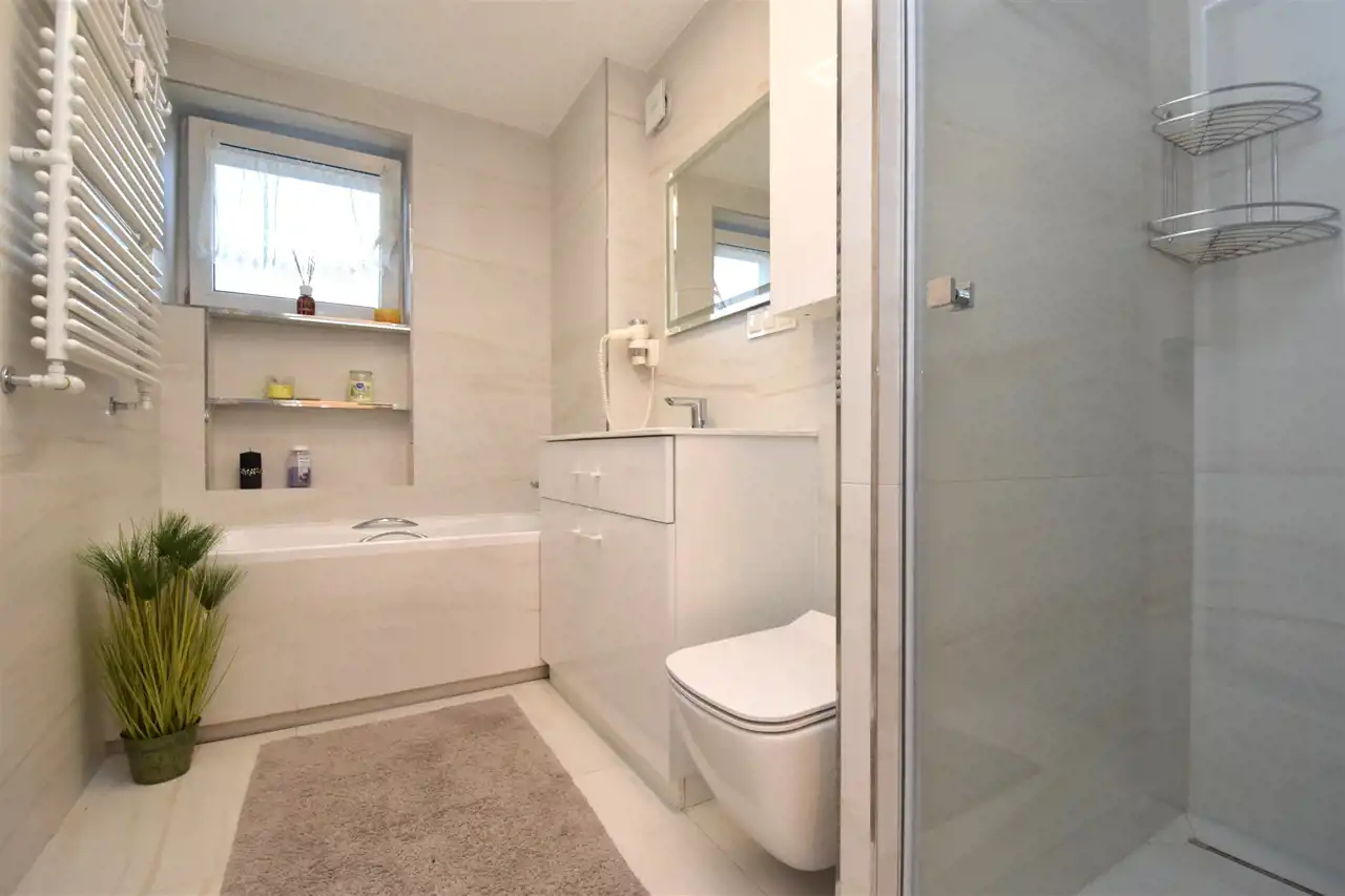 - łazienka wyposażona zarówno w wannę, jak i prysznic,