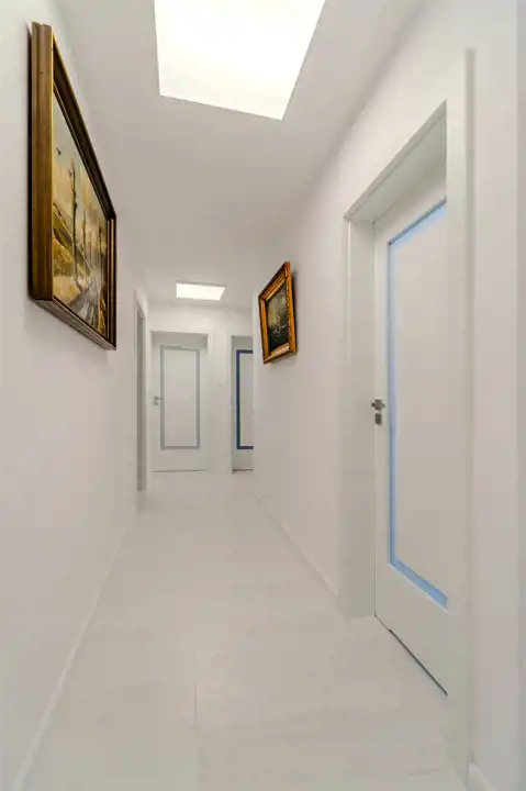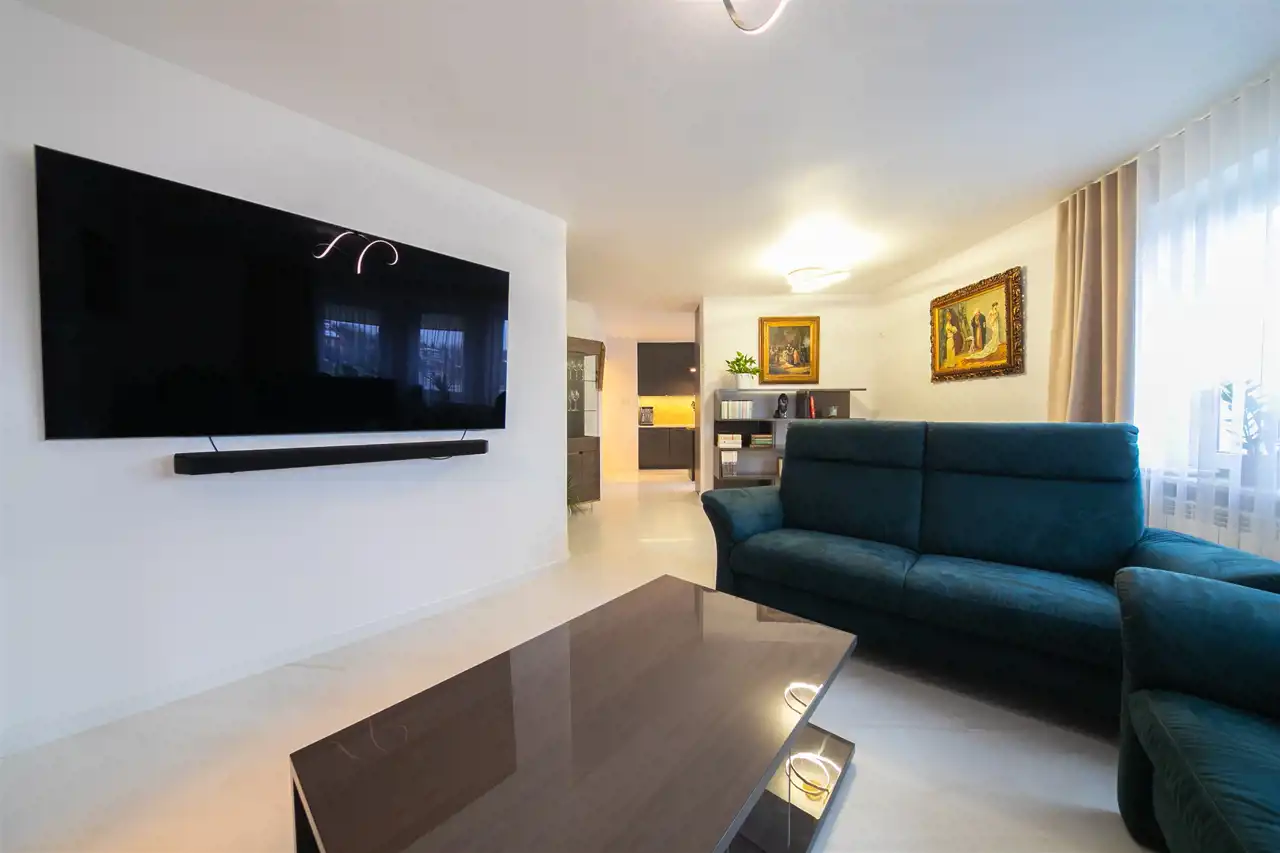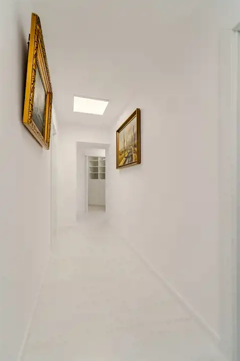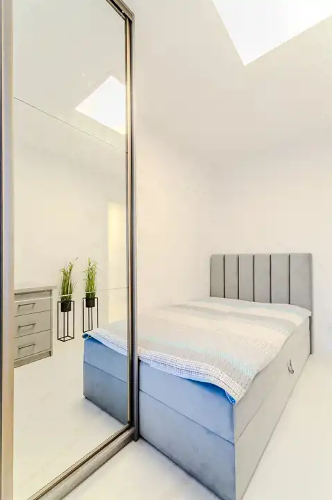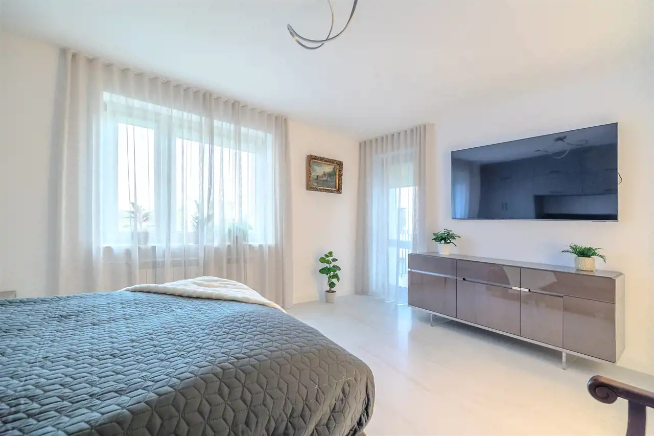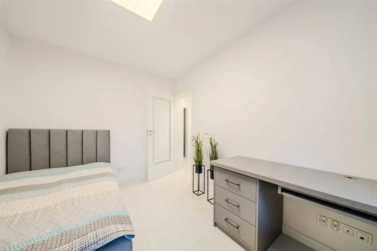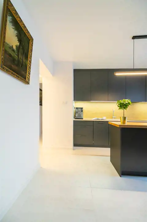 To nowoczesne wnętrze cechuje się funkcjonalnością i uniwersalną aranżacją. Apartament został całkowicie odnowiony według nowej, funkcjonalnej koncepcji, włącznie z wymianą instalacji, pokrycia ścian i podłóg. Zamontowane zostały wysokiej jakości drzwi. Każdy element zabudowy został starannie dobrany i zamontowany, aby zapewnić wysoki standard wykończenia. Całość wykończona jest w jasnych barwach, co w połączeniu z nowoczesnym oświetleniem sprawia pozytywne wrażenie od razu po przestąpieniu progu, a duże okna w pokojach oraz okna balkonowe zapewniają stały dostęp światła słonecznego.