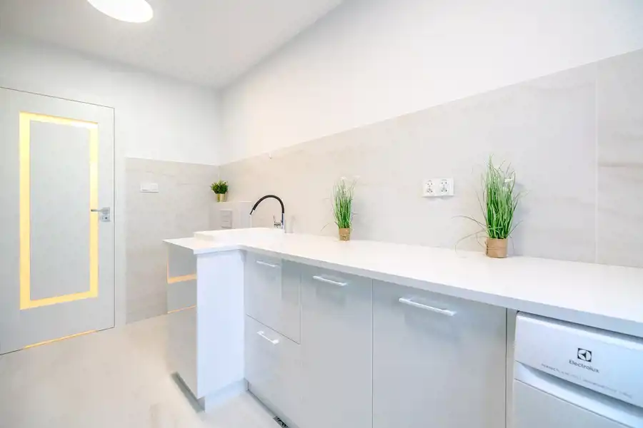 To nowoczesne wnętrze cechuje się funkcjonalnością i uniwersalną aranżacją. Apartament został całkowicie odnowiony według nowej, funkcjonalnej koncepcji, włącznie z wymianą instalacji, pokrycia ścian i podłóg. Zamontowane zostały wysokiej jakości drzwi. Każdy element zabudowy został starannie dobrany i zamontowany, aby zapewnić wysoki standard wykończenia. Całość wykończona jest w jasnych barwach, co w połączeniu z nowoczesnym oświetleniem sprawia pozytywne wrażenie od razu po przestąpieniu progu, a duże okna w pokojach oraz okna balkonowe zapewniają stały dostęp światła słonecznego.