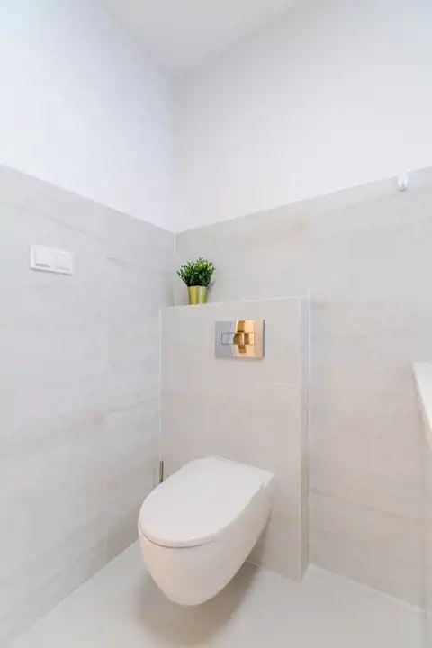 W urządzonej w jasnej tonacji łazience, do wyboru mieszkańców znajduje się zarówno wanna jak i prysznic, z wysokiej klasy armaturą.