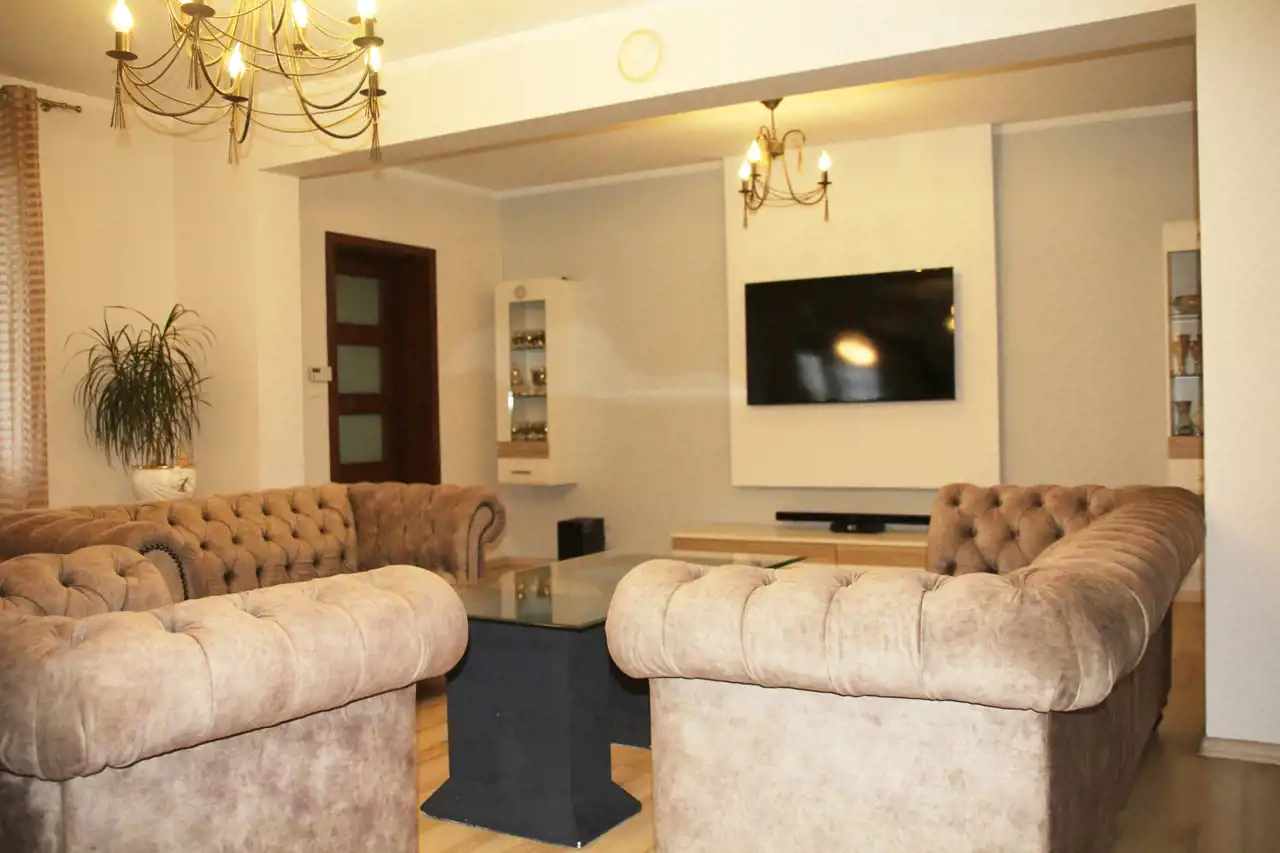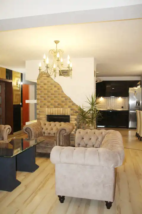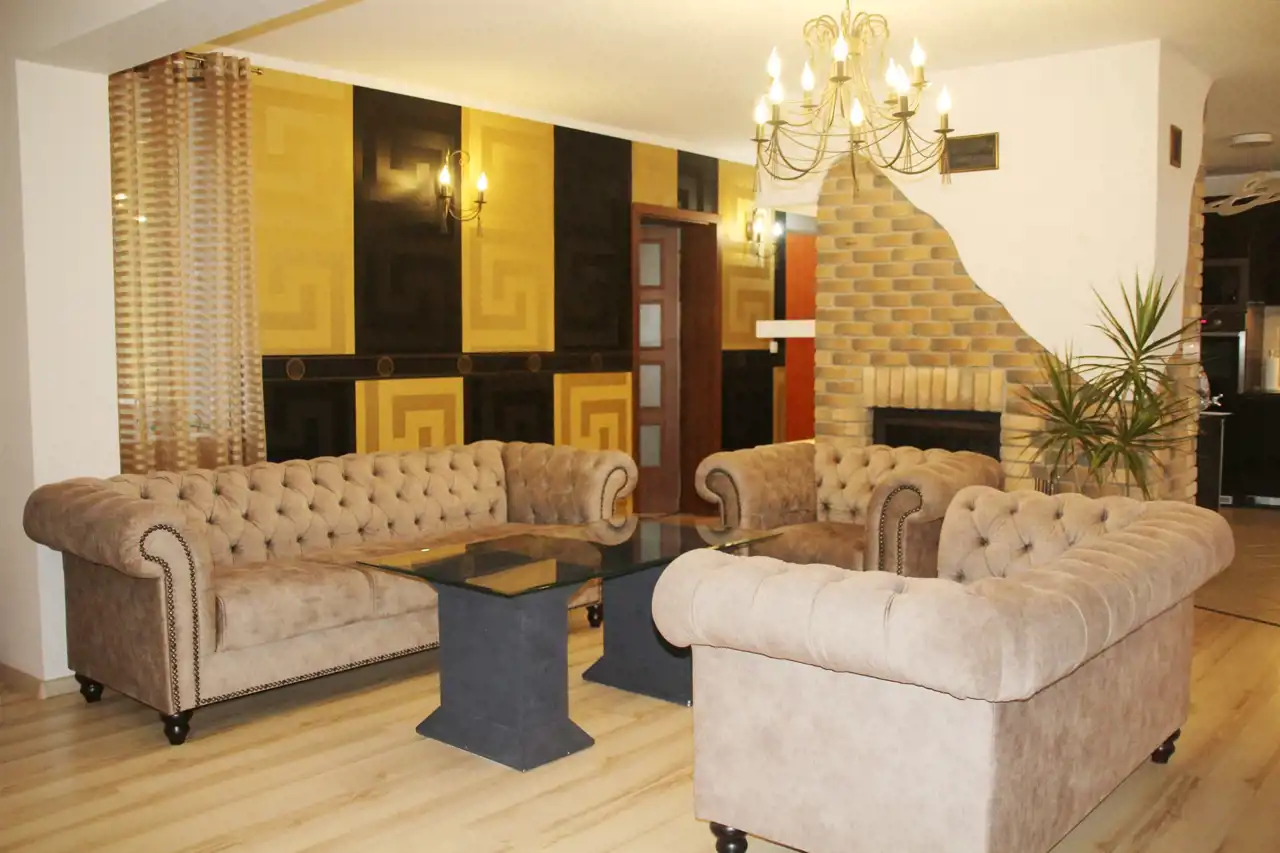 Salon z kominkiem. Jadalnia. Cztery przestronne sypialnie. Garderoba.