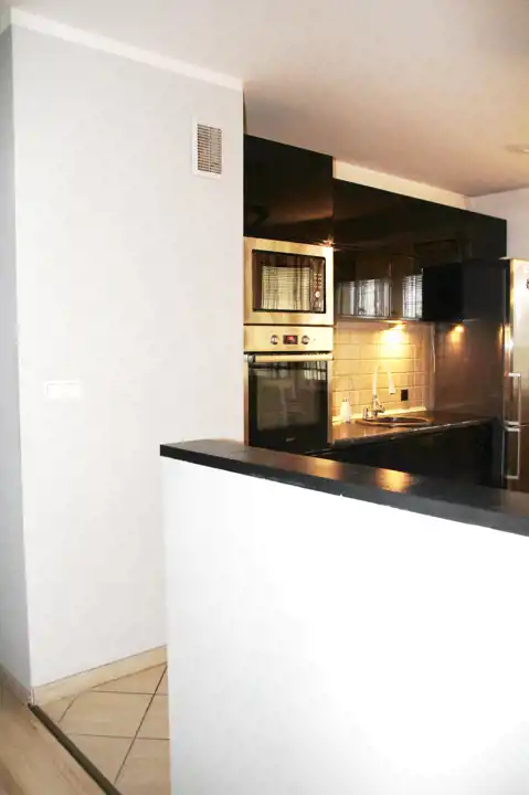 - w kuchni zabudowa kuchenna, ze sprzętem AGD,