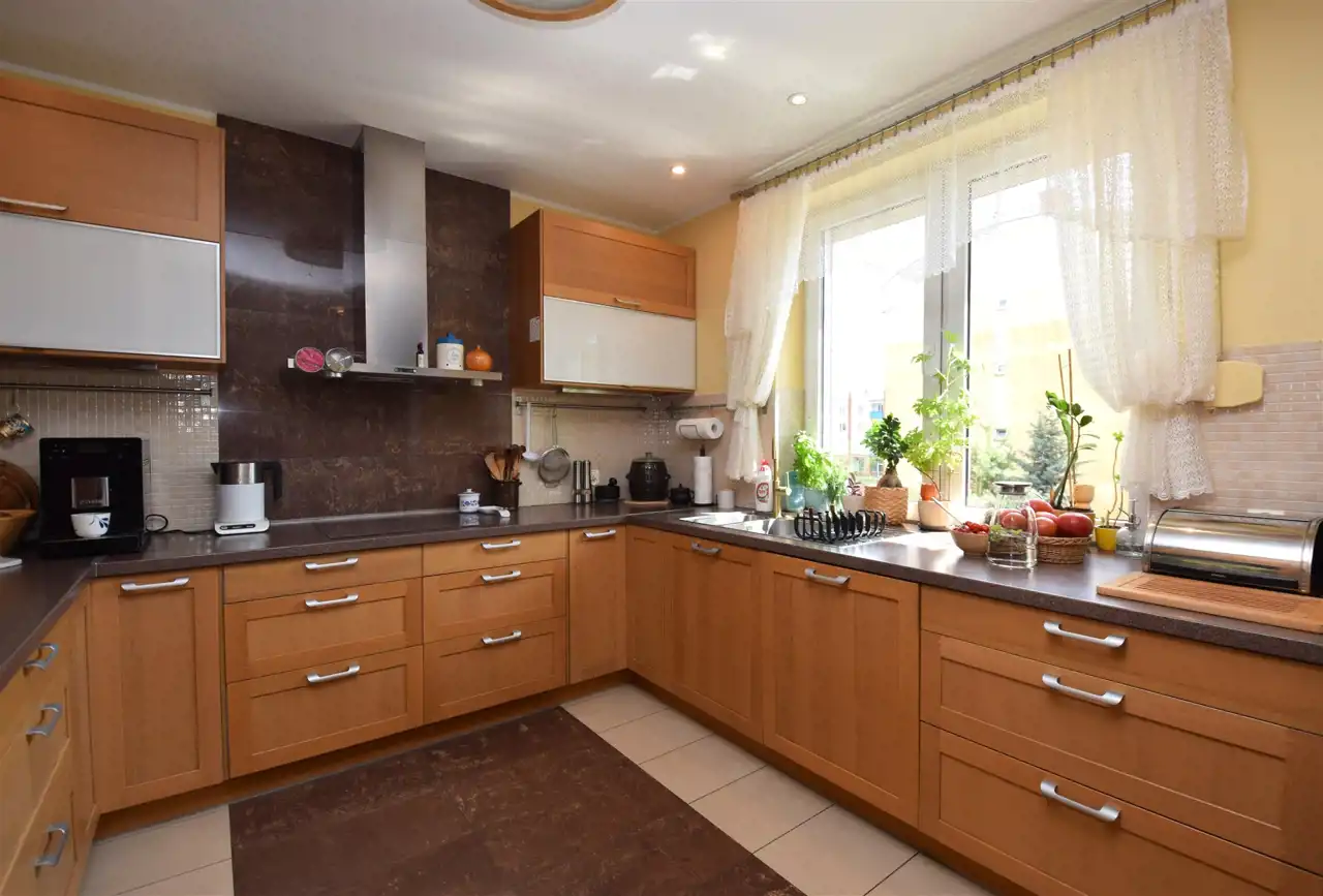 - dobrze zaprojektowana kuchnia o pow. 9m2, na której wyposażeniu pozostają meble