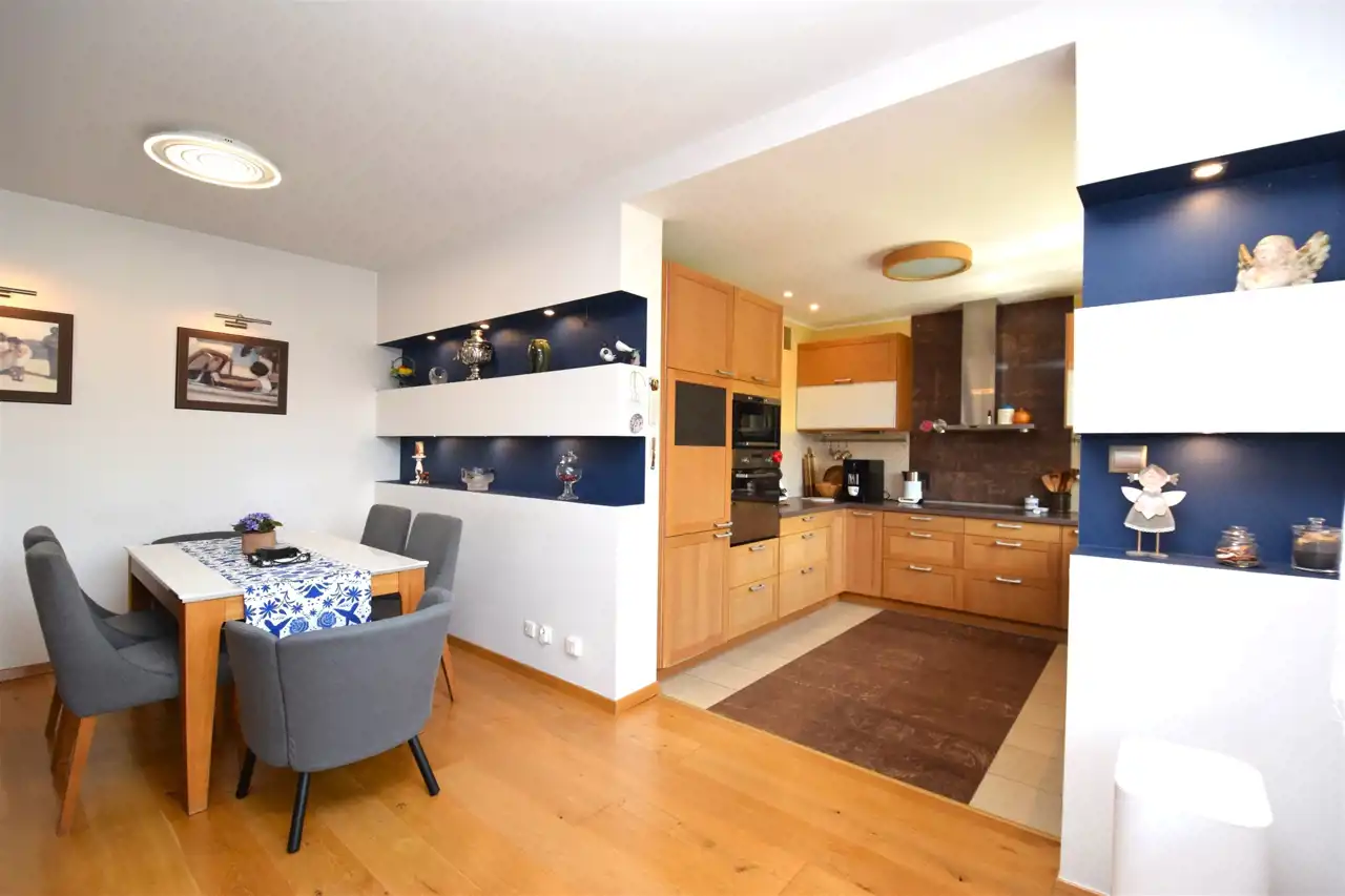- Kuchnia (9 m²) – ustawna, z zabudową meblową w cenie
