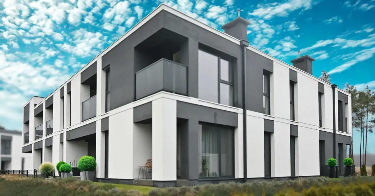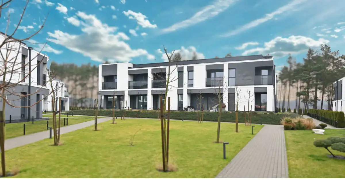 Kompleks składa się z 5 niskich budynków, każdy o zaledwie dwóch kondygnacjach mieszkalnych (parter + piętro). Taka forma zabudowy zapewnia prywatność, ciszę i komfort codziennego życia – bez anonimowości dużych osiedli.