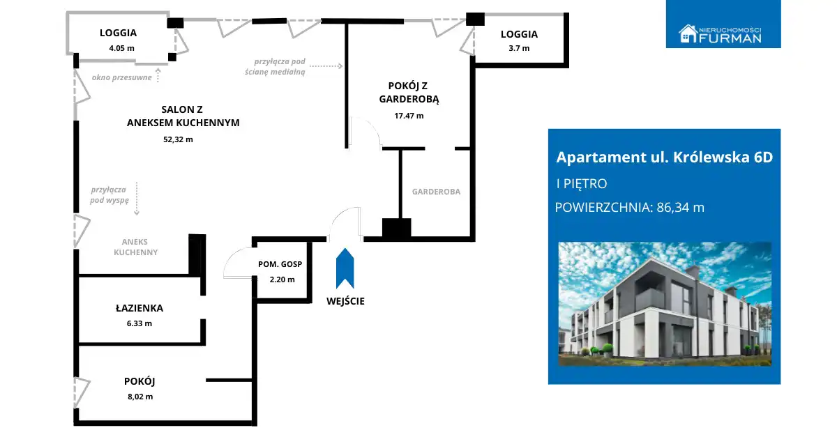 - Charakterystyka mieszkania 86.34 m2, 3 pokoje