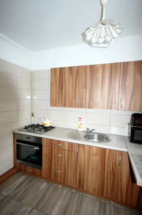 Kuchnia (3,4 m²) – osobna, w pełni umeblowana i wyposażona w sprzęt AGD.