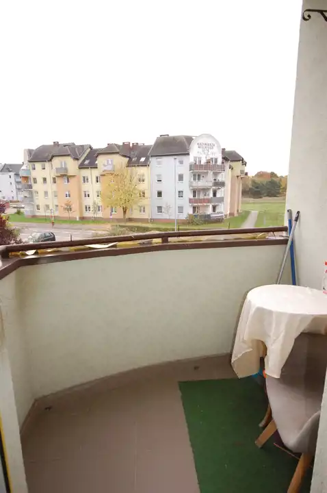 Balkon – idealne miejsce na poranną kawę lub wieczorny relaks; wyposażony w stolik do odpoczynku.
