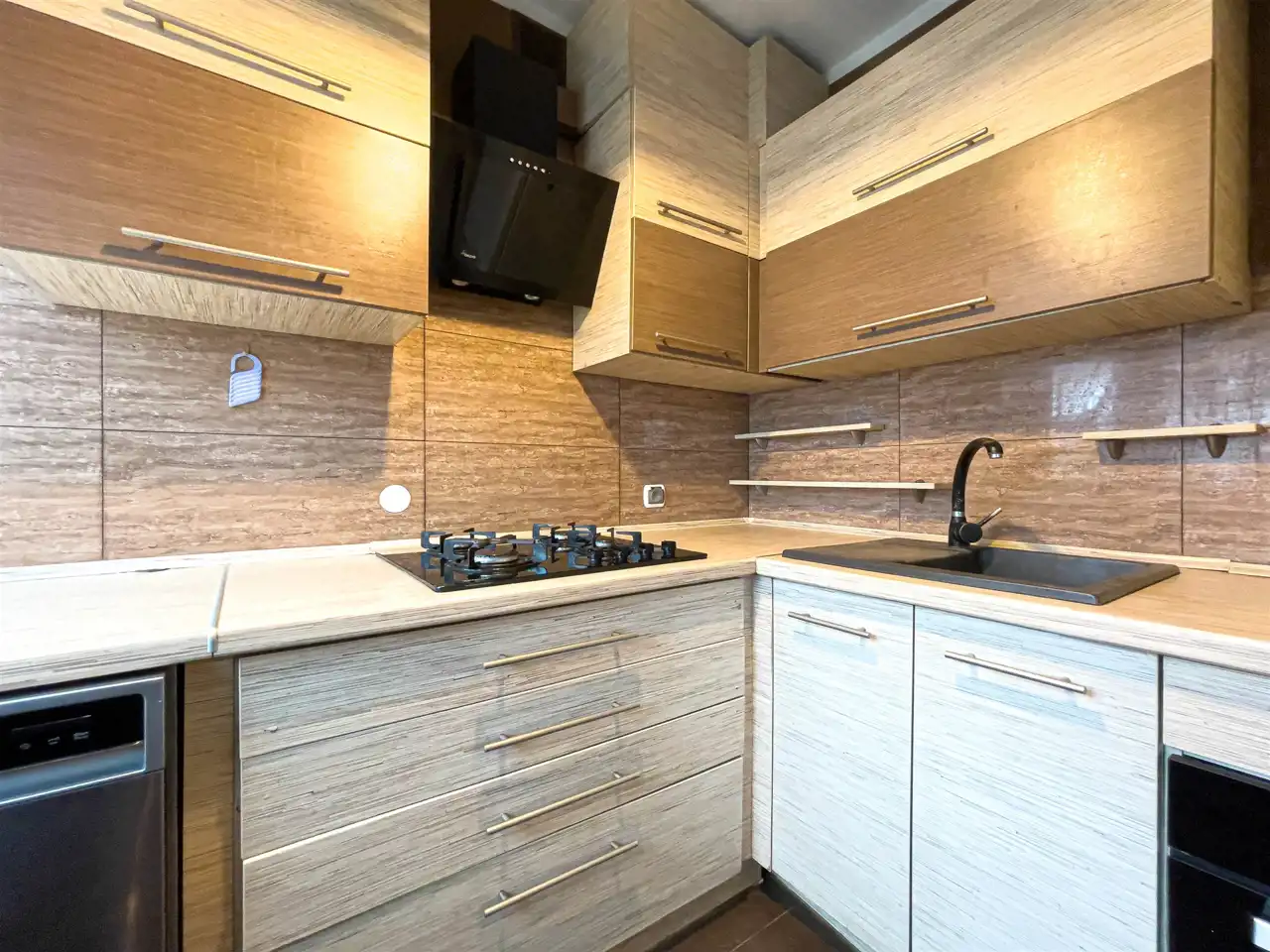 Mieszkanie umeblowane. Wyposażone w sprzęty AGD (płyta grzewcza, piekarnik, lodówka, pralka).