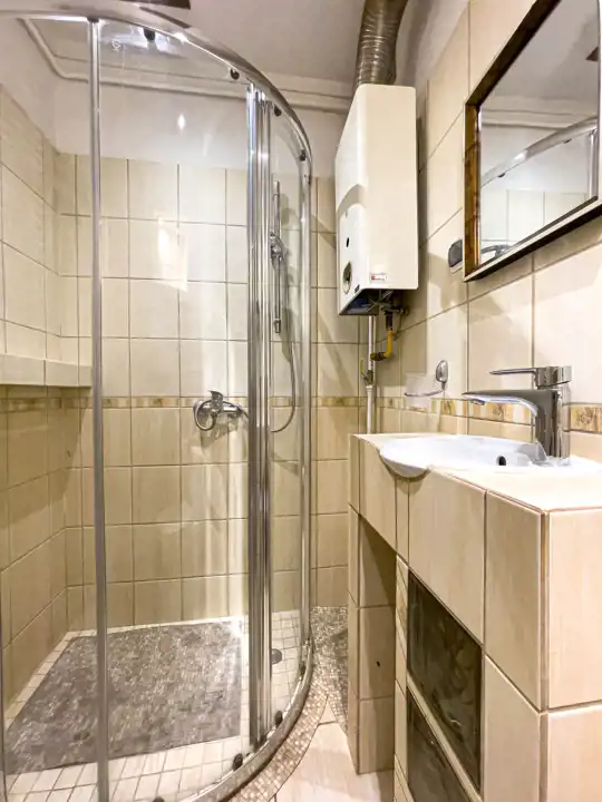 - Media Ogrzewanie: C.O. Z SIECI MIEJSKIEJ; Woda: ciepła - piecyk gazowy; Gaz: tak - miejski