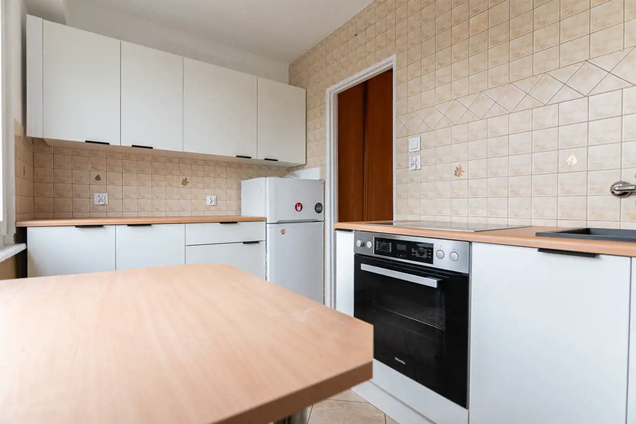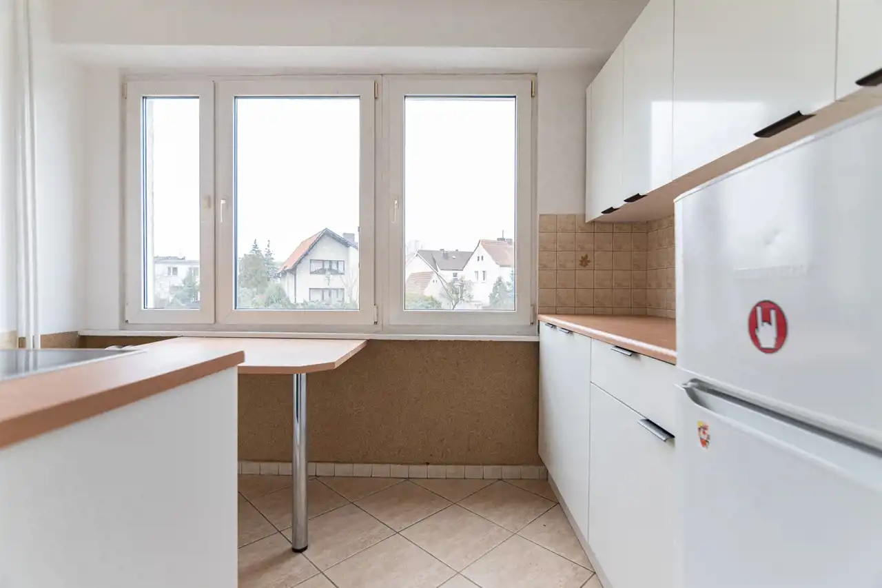 Nieruchomość wynajmowana jest z kompletną zabudową kuchenną oraz sprzętem AGD – piekarnikiem, płytą indukcyjną i lodówką. Wystarczy wstawić meble do pokoi, by cieszyć się gotowym do zamieszkania wnętrzem.