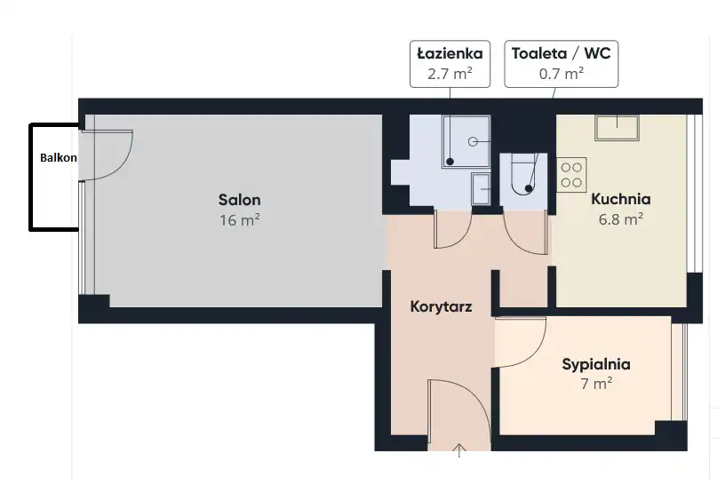 - łazienka o pow. 2,7m2