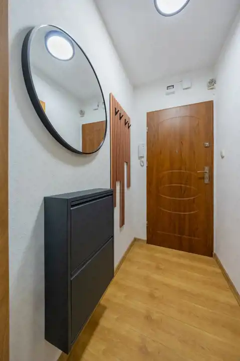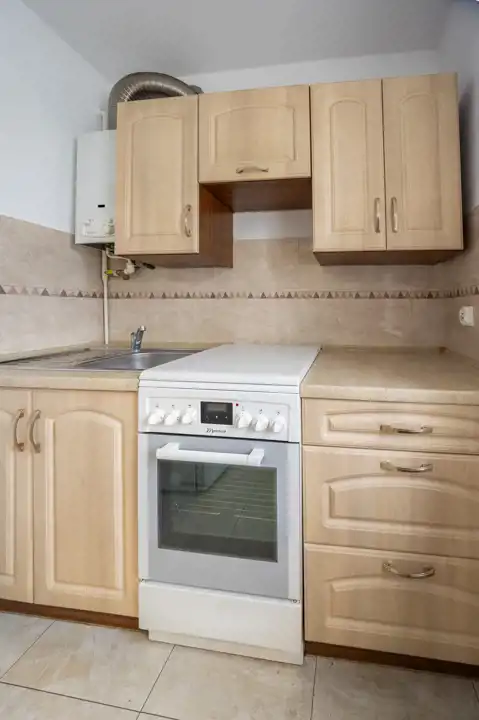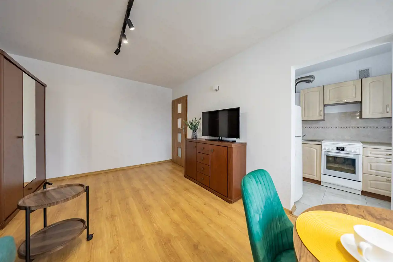 Mieszkanie jest jasne i ciepłe. Jest zadbane, odświeżone i gotowe do zamieszkania. W pokoju i przedpokoju na podłodze panele, w kuchni i łazience płytki. Okna PCV. W łazience znajduje się prysznic, a ciepła woda jest z piecyka gazowego.