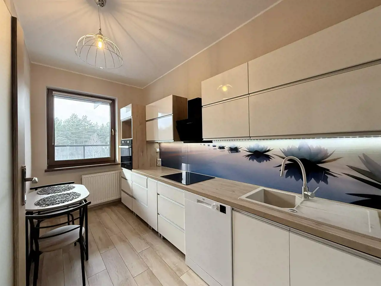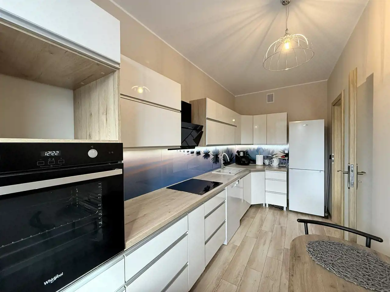 Dwa oddzielne pokoje, oddzielna kuchnia, duża łazienka z prysznicem.