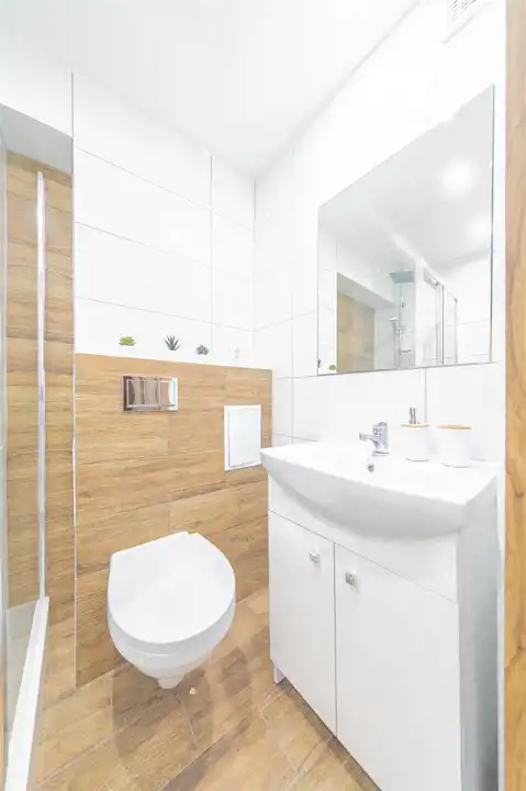 - Media Ogrzewanie: C.O. miejskie; Woda: ciepła - miejska; Gaz: brak