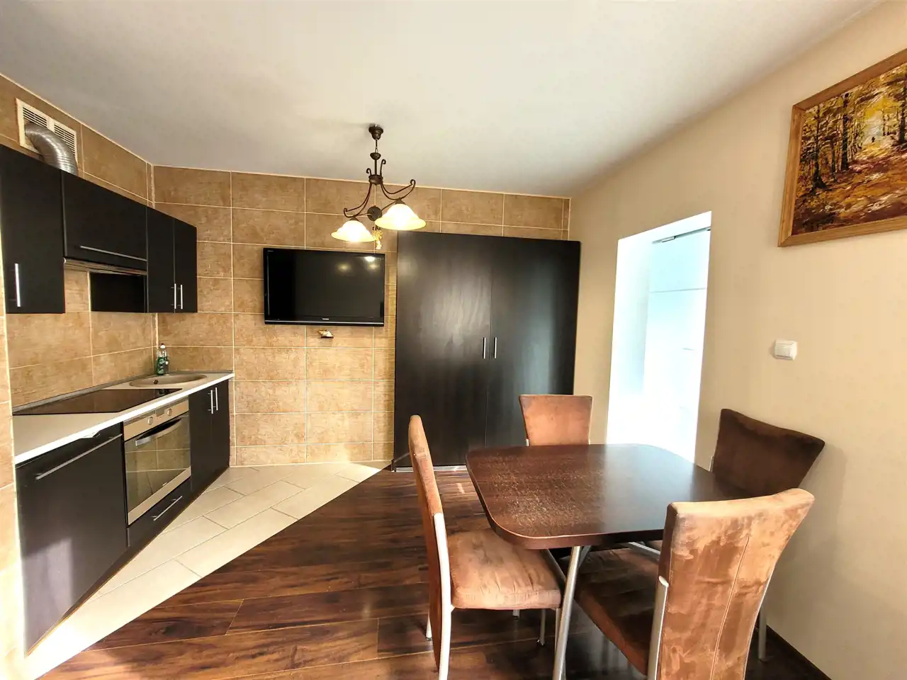 POKÓJ/SALON: sofa z funkcja spania, stolik kawowy, stół + cztery krzesła, telewizor