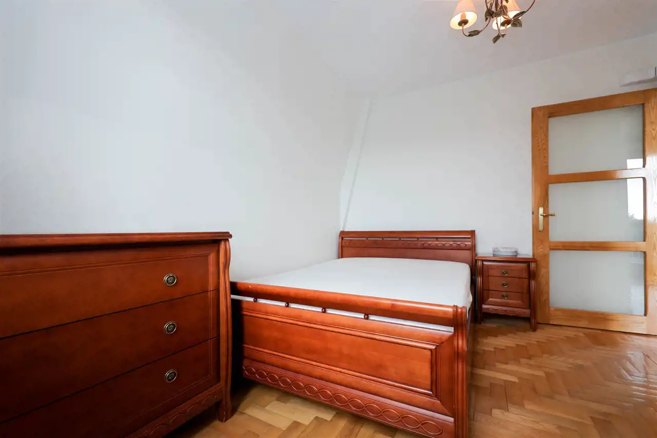 - sypialnia z pojemną szafą oraz wygodnym łóżkiem dwuosobowym,