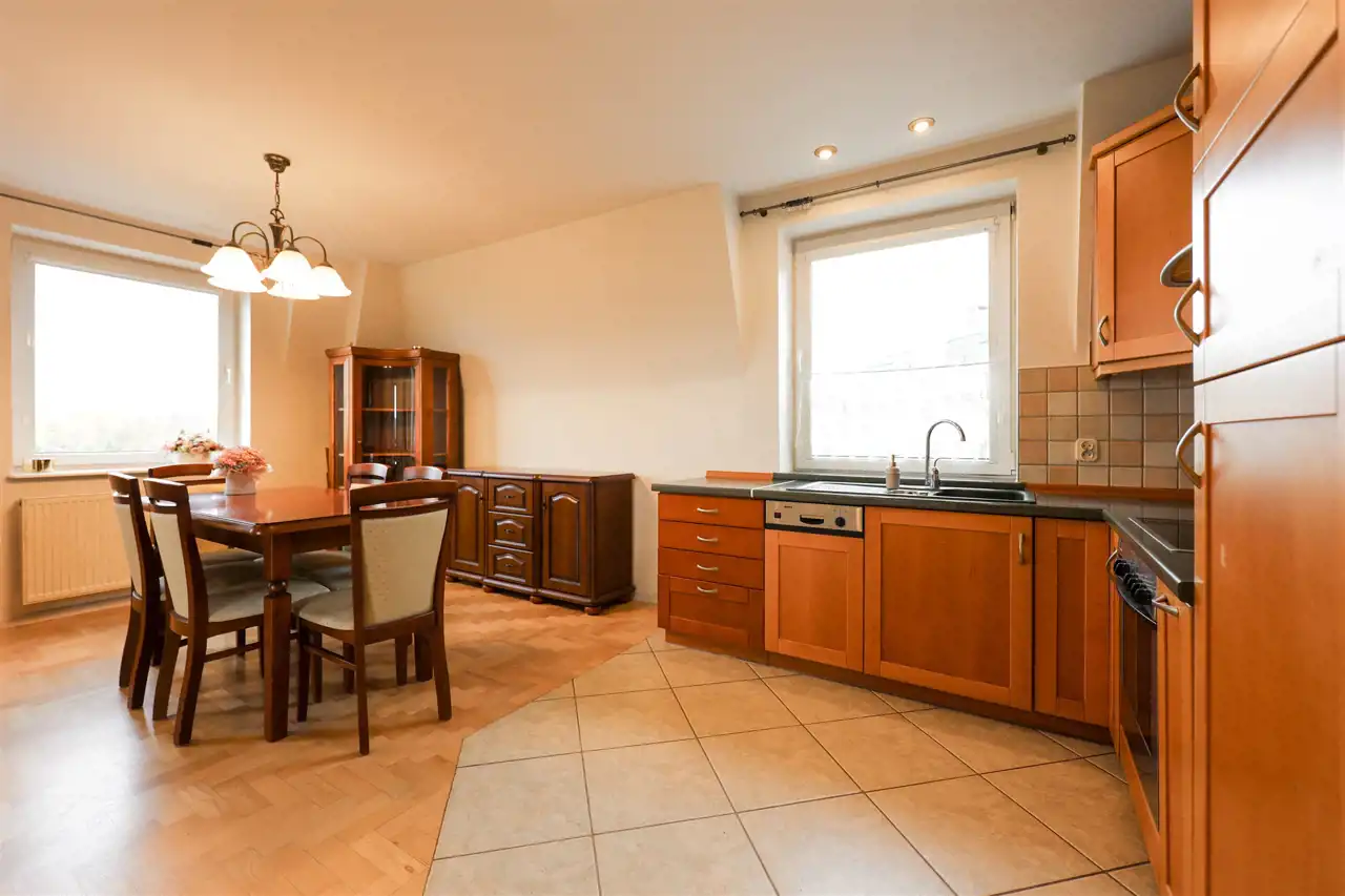 W najbliższym otoczeniu sklepy, punkty usługowe, apteka, szkoły, przedszkola, place zabaw, tereny spacerowe, las. Dobra komunikacja. Miejsce idealne dla rodzin.