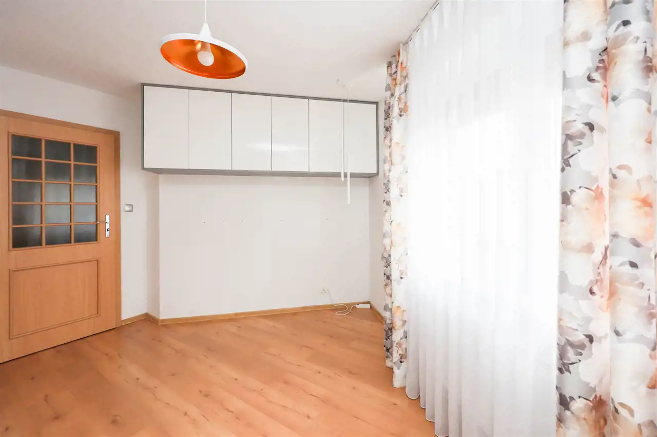 pokój o powierzchni 13 m²– doskonały jako sypialnia lub pokój do pracy, w pomieszczeniu dwie pojemne szafy oraz szafki wiszące;