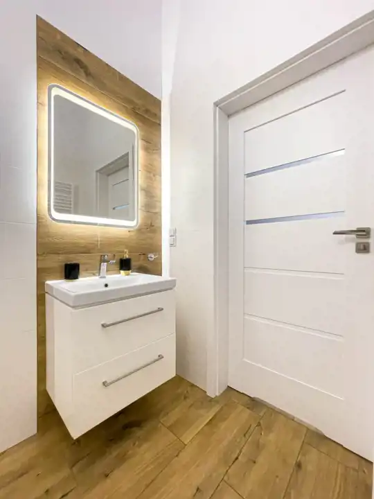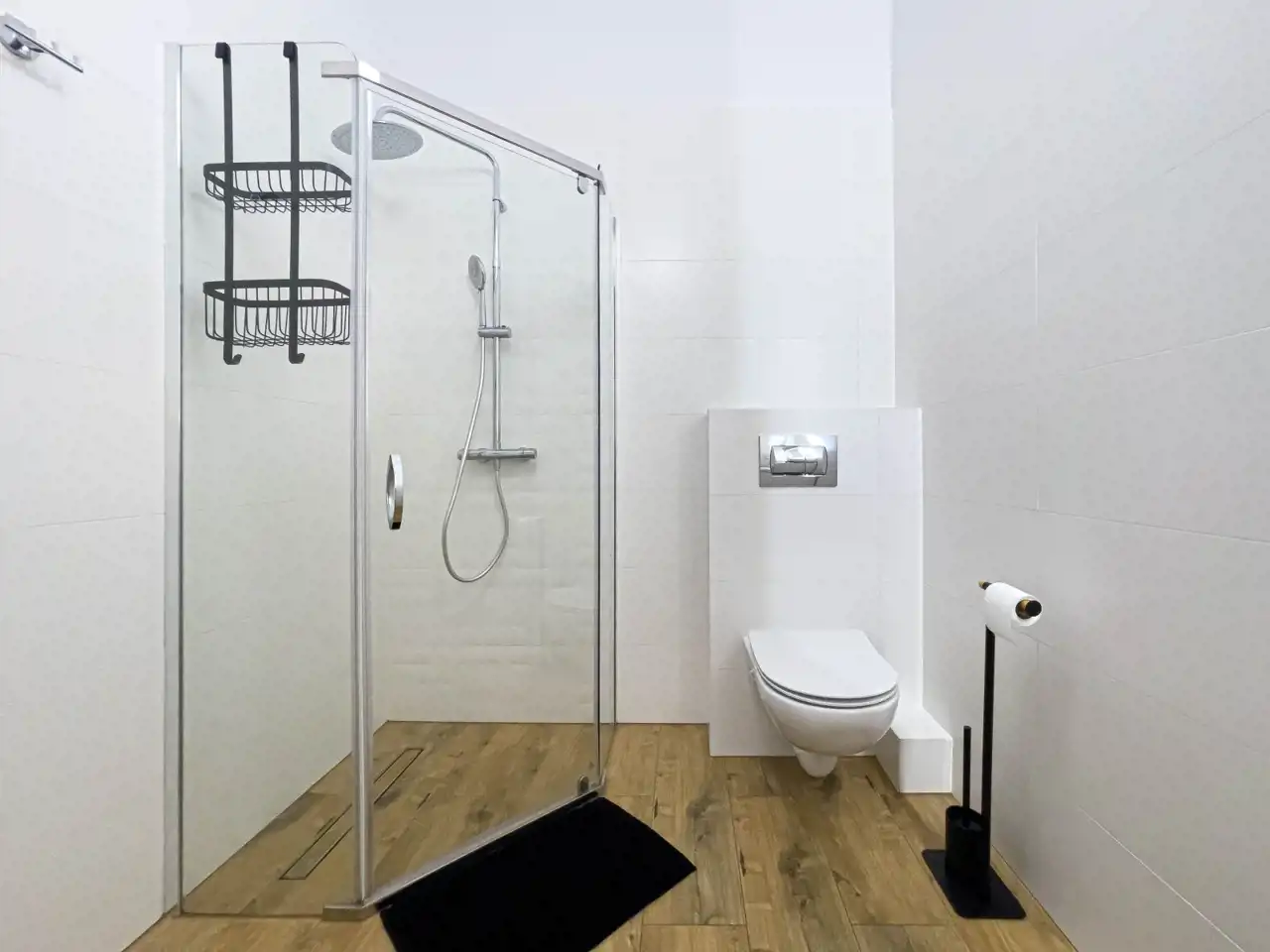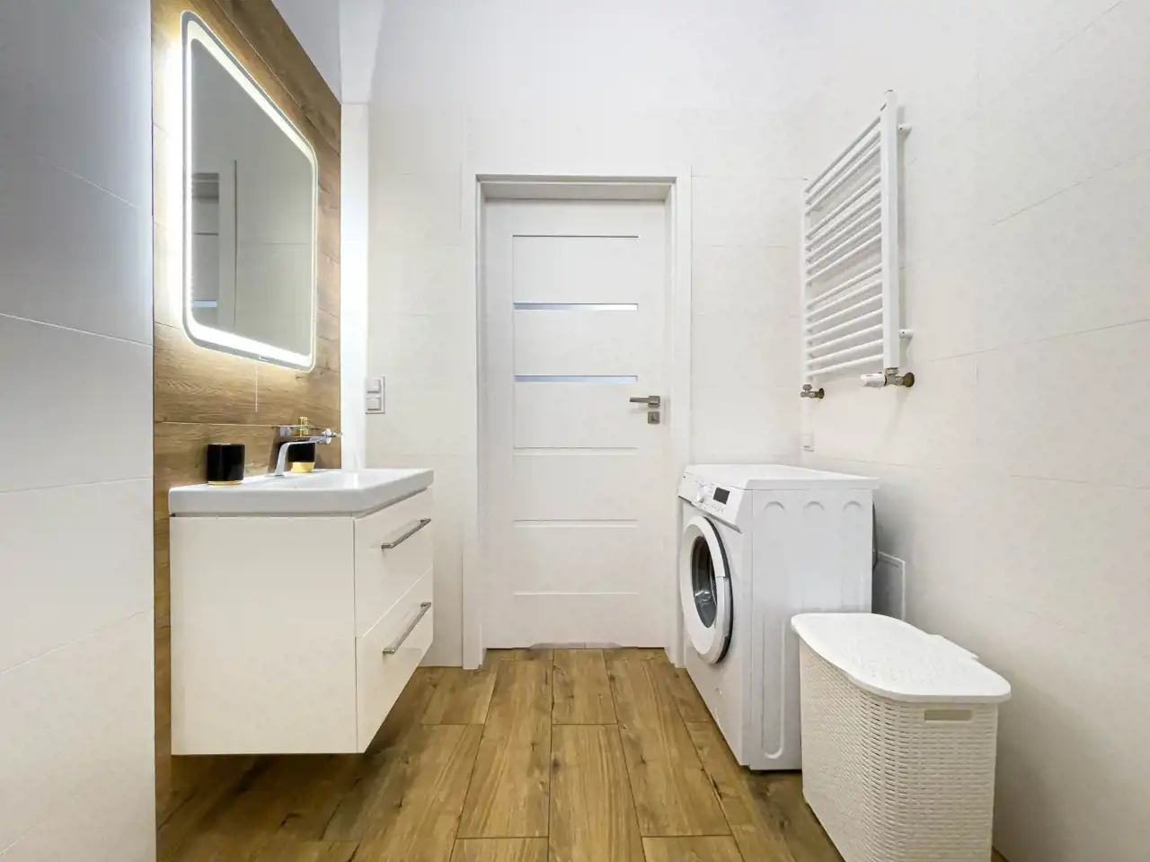 Łazienka z kabiną prysznicową o pow. 5,26m2 (wyposażona w pralkę).