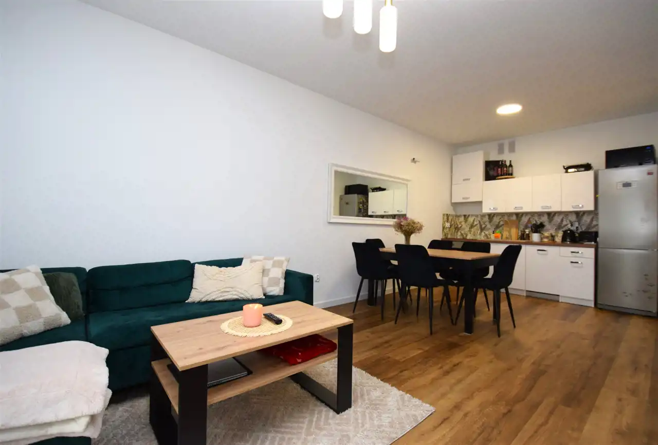 - pokój dzienny 25m2 z aneksem kuchennym (meble kuchenne i lodówka na wyposażeniu)