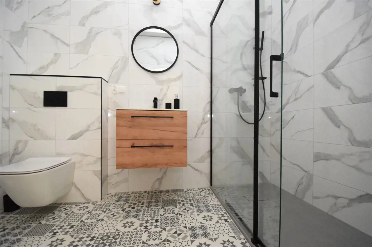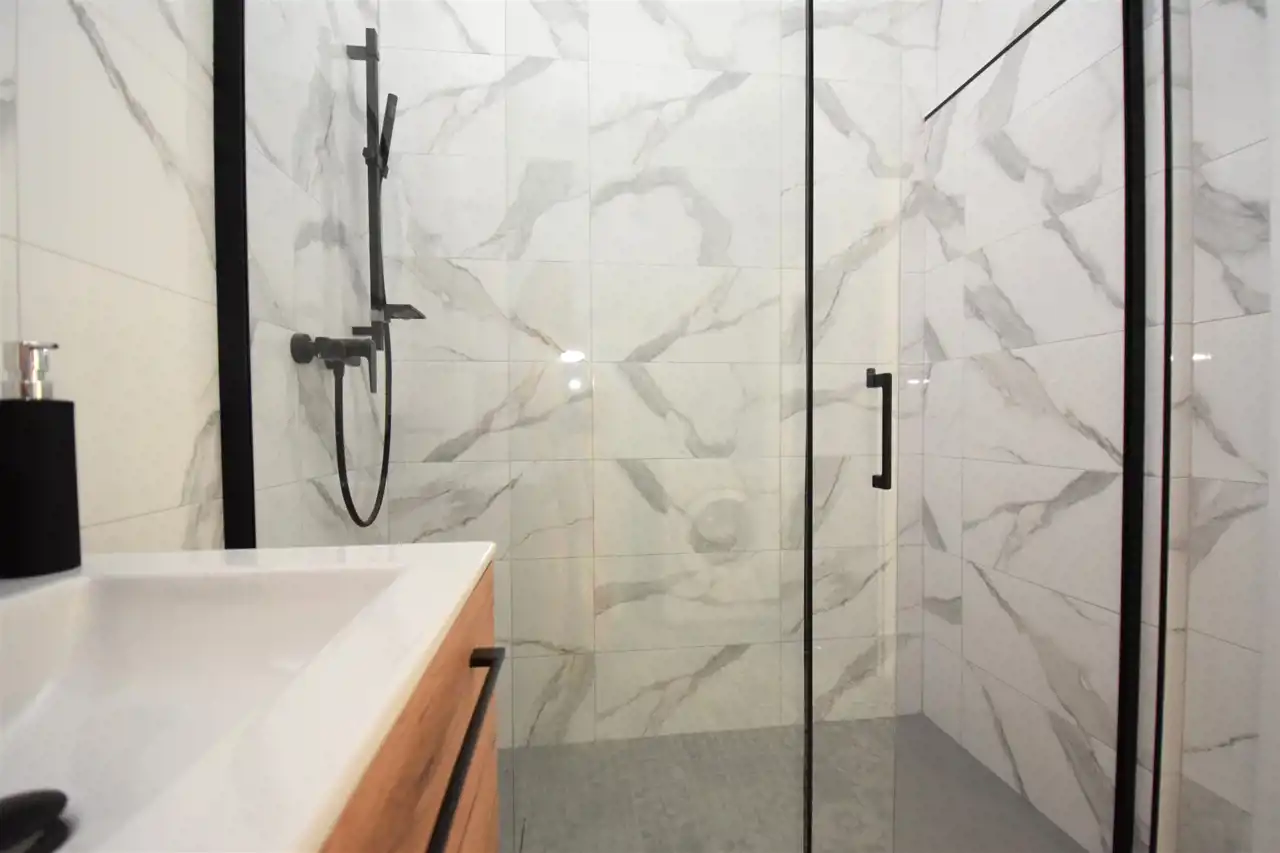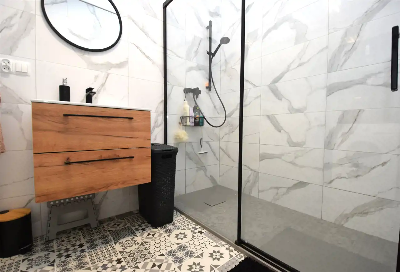 Łazienka o pow. 5,40m2 umeblowana i wyposażona w pralkę