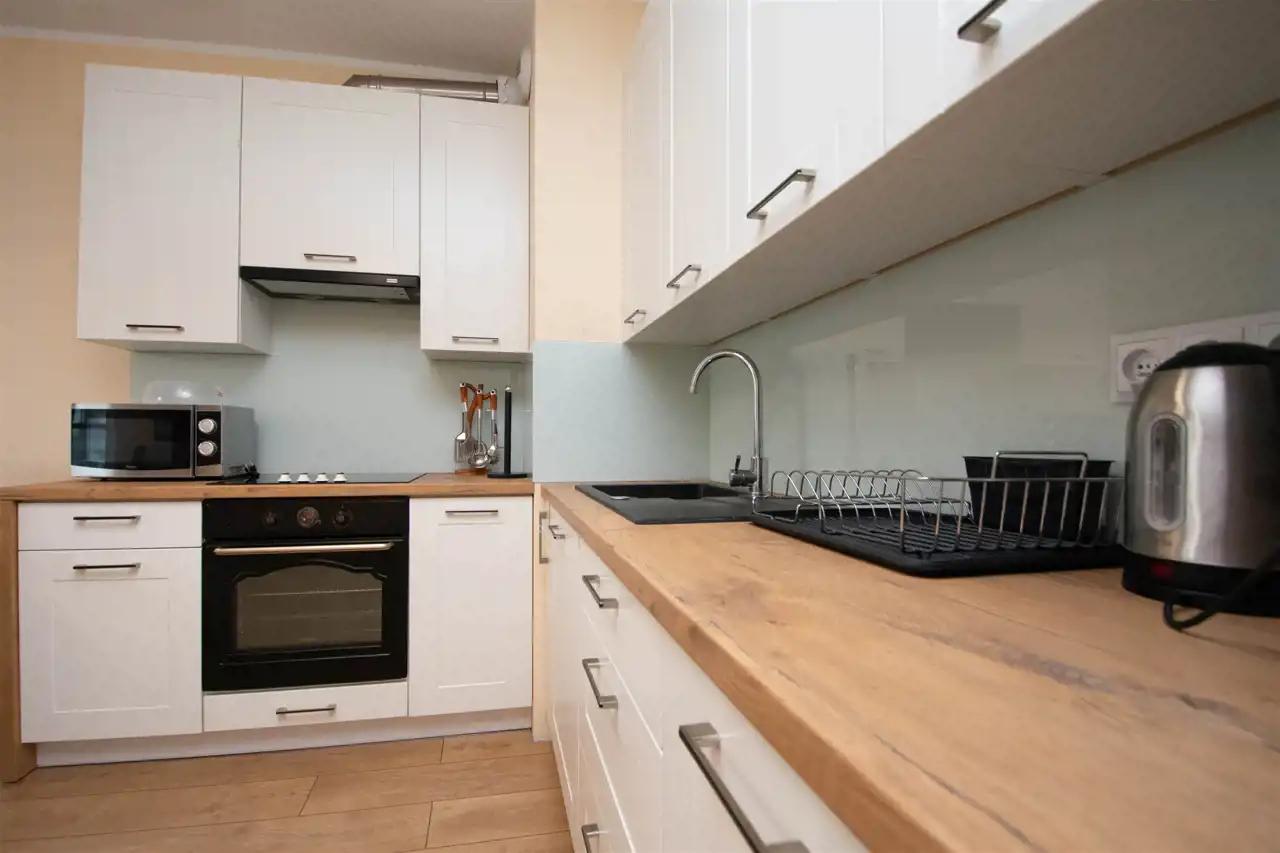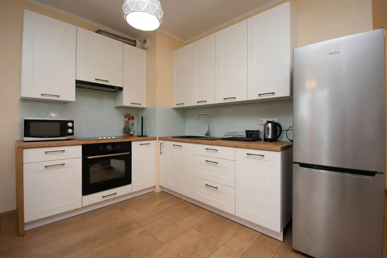 - kuchnia wyposażona w nowoczesną zabudowę, okap, piekarnik, płytę indukcyjną, lodówko- zamrażarkę.