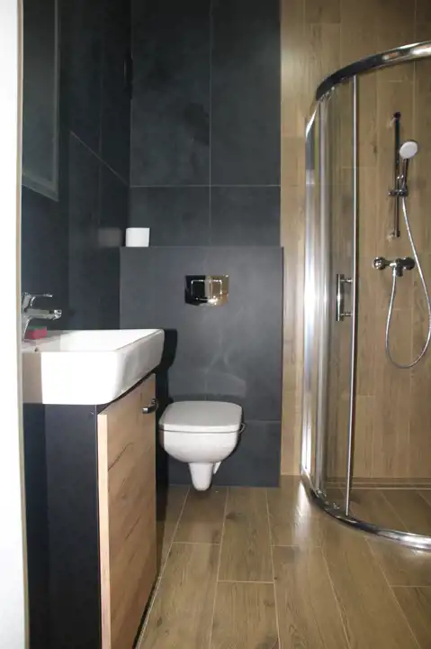 Nowe sprzęty w kuchni i łazience. Zmywarka w zabudowie kuchennej.