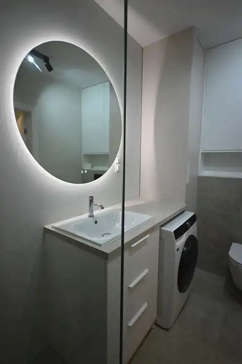 Łazienka z wc wyposażona w pralk0-suszarkę