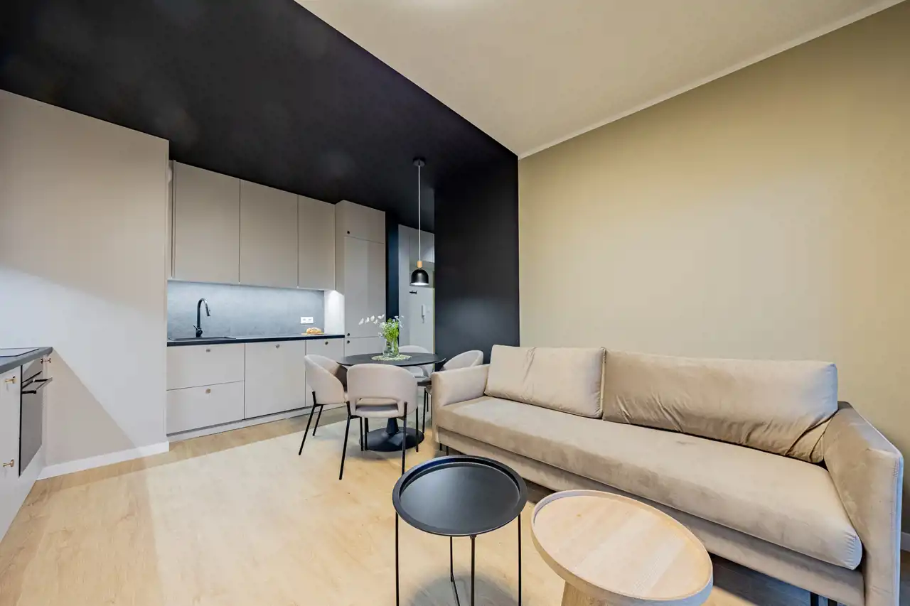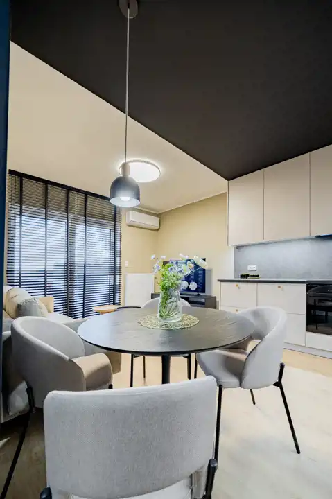 Stylowe mieszkanie w nowym budownictwie, urządzone w eleganckim, harmonijnym stylu i w pełni gotowe do zamieszkania od zaraz. Jasny, przestronny salon z dużymi przeszkleniami oraz wyjściem na balkon zapewnia doskonałe doświetlenie i tworzy idealną przestrzeń do wypoczynku. Nowoczesna kuchnia wyposażona w komplet sprzętów AGD gwarantuje wygodę na co dzień. Dwa dodatkowe pokoje oferują pełen komfort mieszkania, zapewniając prywatność wszystkim domownikom.