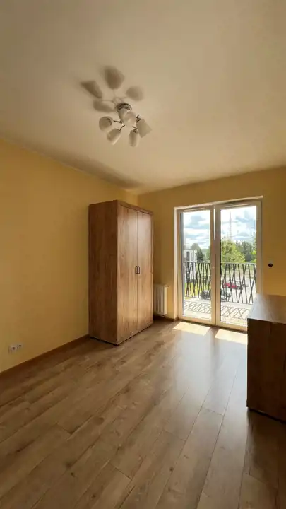 Sypialnia: Dwie pojemne szafy - jedna trzydrzwiowa z lustrem i druga dwudrzwiowa. Komoda pod tv. Na ten moment brak łóżka, ale właścicielka może dokupić - kwestia uzgodnienia