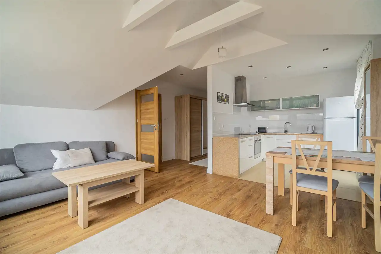 Zapraszamy do wynajmu przestronnego i nowoczesnego mieszkania, które znajduje się na pierwszym piętrze eleganckiego domu w spokojnej dzielnicy Podlasie. To idealne miejsce dla osób ceniących komfort, nowoczesność i przestrzeń.