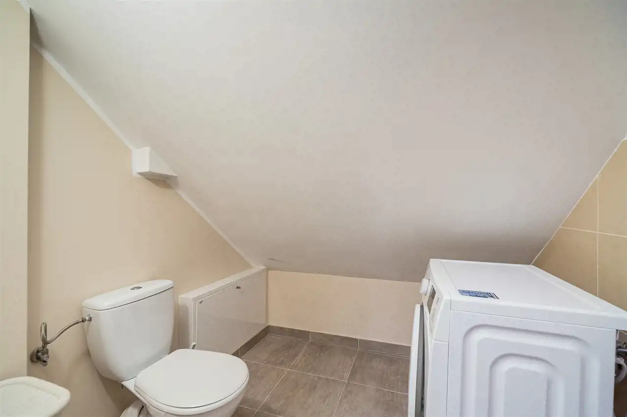 - Dodatkowe pomieszczenia: Klatka schodowa o powierzchni ok. 6 m² oraz pomieszczenie techniczne z WC i pralką o powierzchni 1,5 m².