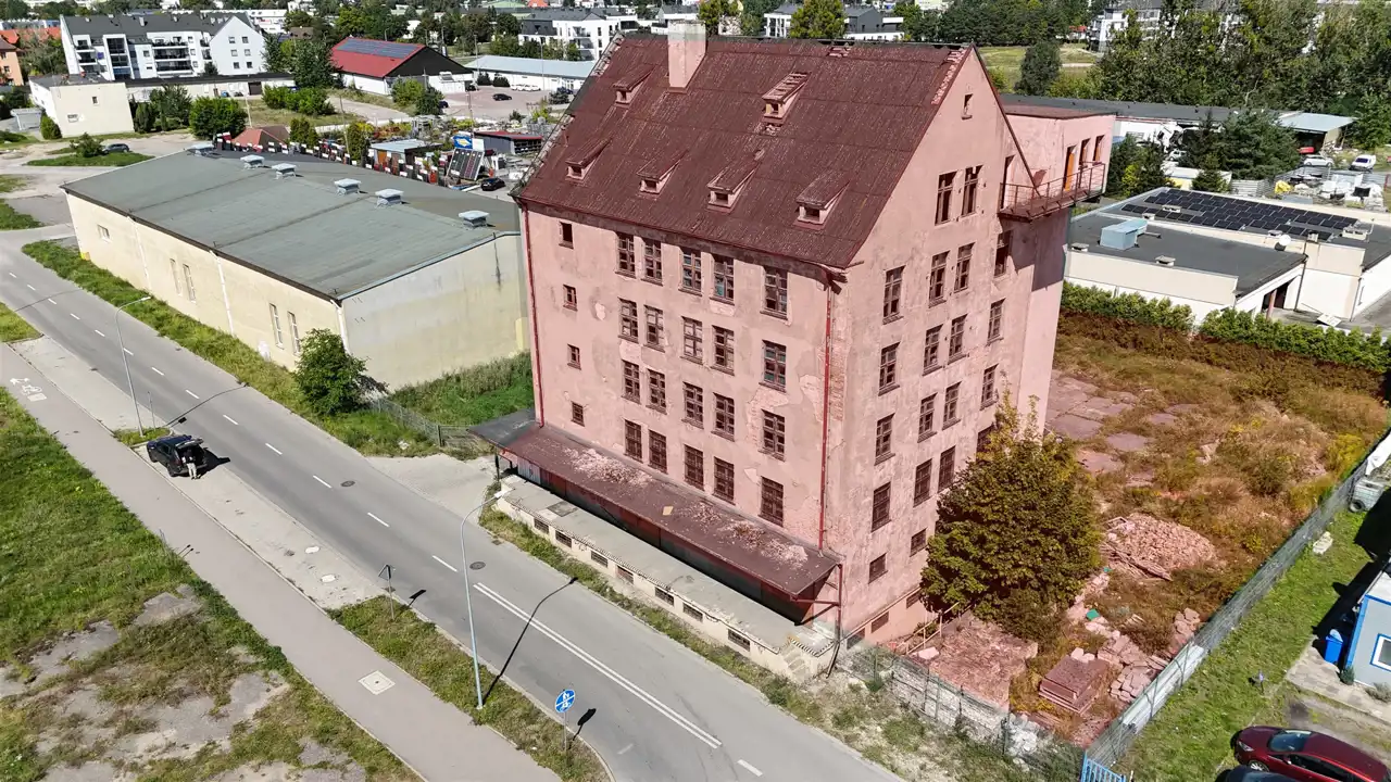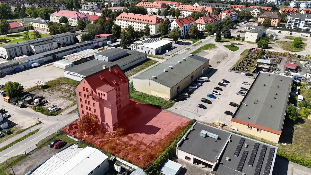 Na sprzedaż grunt o powierzchni 1386 m², zabudowany siedmiokondygnacyjnym budynkiem użytkowy (w tym poddasze i piwnica), o łącznej powierzchni użytkowej 1661,90 m².