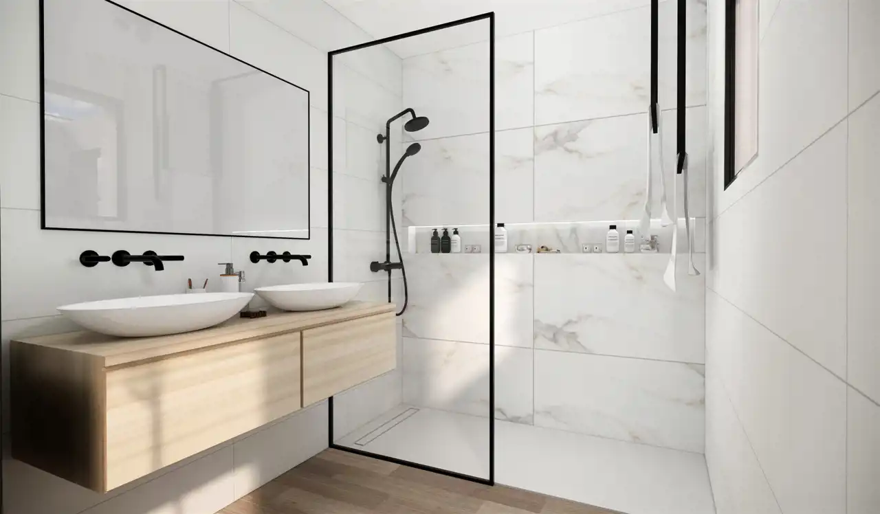 Domy składają się z salonu otwartego na kuchnię, 3 sypialni, 3 łazienek i toalety.