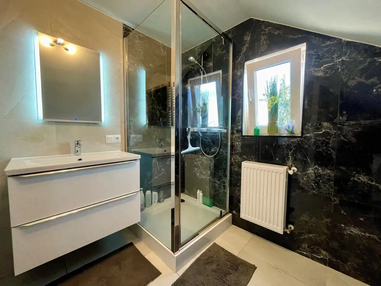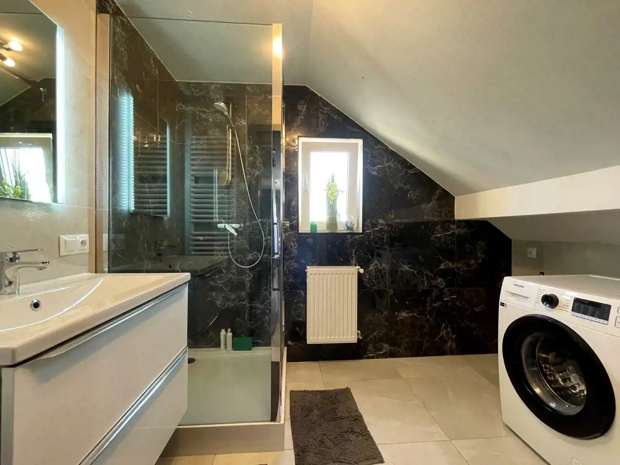 -elegancka łazienka z kabina prysznicową