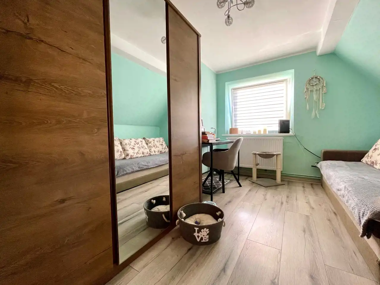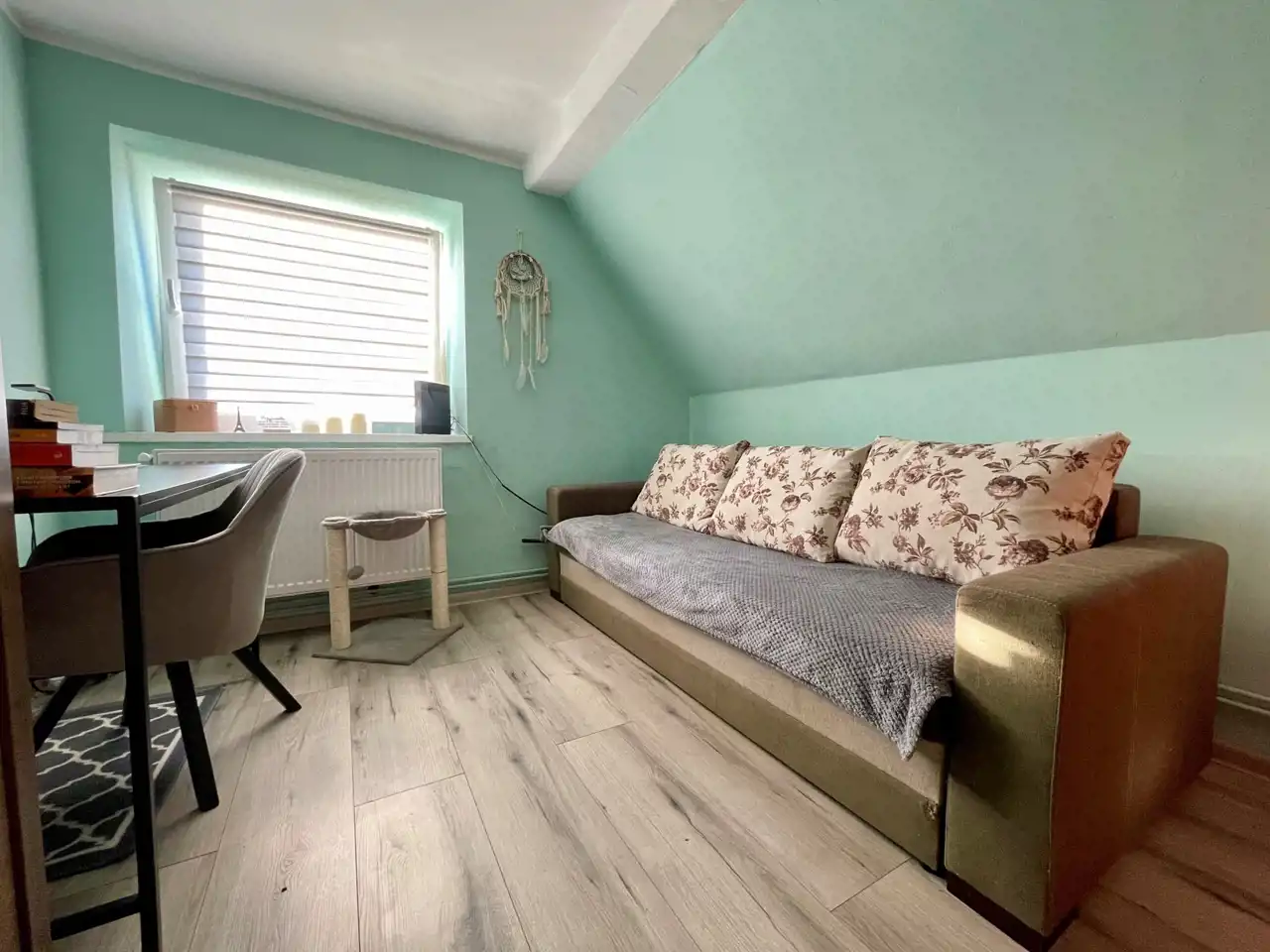 Do lokalu przynależy działka o powierzchni 254 m2, składają się na nią dwa ogródki, niewielki budynek gospodarczy oraz podjazd dla auta.